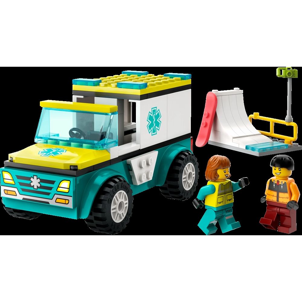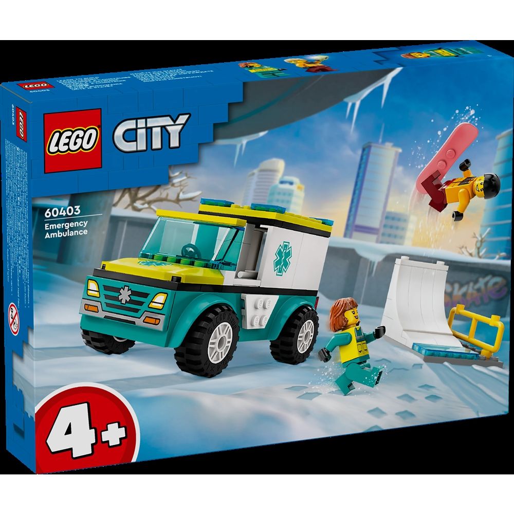 Home » Toy » LEGO » LEGO 4+ Ambulance and Snowboarder - 60403 - LEGO City LEGO City Great price:24,49EUR Few in stock Quantity Add to basket See more from: LEGO City Item number: LEG60403 Do you have questions about the product? LEGO City Ambulance and Snowboarder 60403Fans of emergency vehicles will love this toy set with an ambulance, a skatepark scene and minifigures of a snowboarder and a paramedic. Return to LEGO 4+