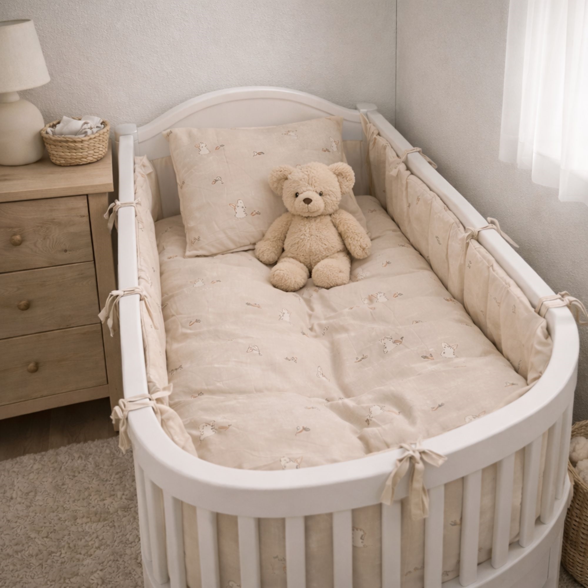This soft baby bedding is made of 100% soft cotton of high quality, which contains good natural properties that all add something good to the bedding set. Among other things, cotton is breathable, highly absorbent, wonderfully soft and comfortable around the child's body and skin. Additionally, it is easy to wash, which is also a small gift when it comes to babies and little ones, as time can sometimes be scarce with a small baby.