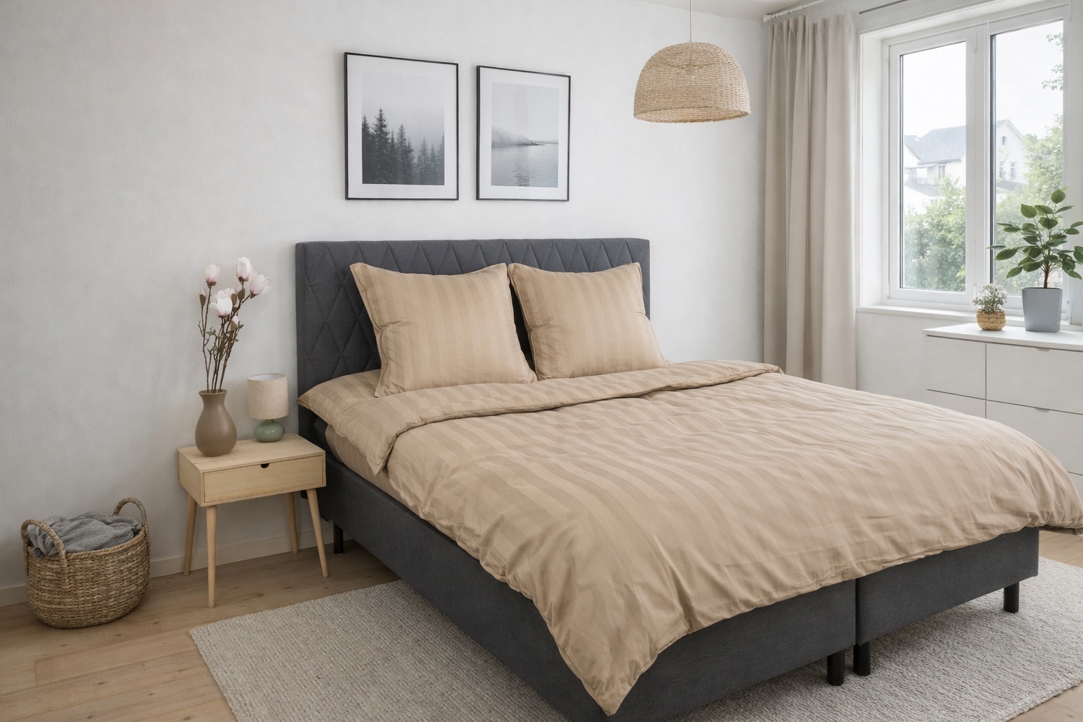 Bamboo bedding - 100% Natural bamboo - 140x200 cm - Sand-colored, jacquard woven bed set with stripes