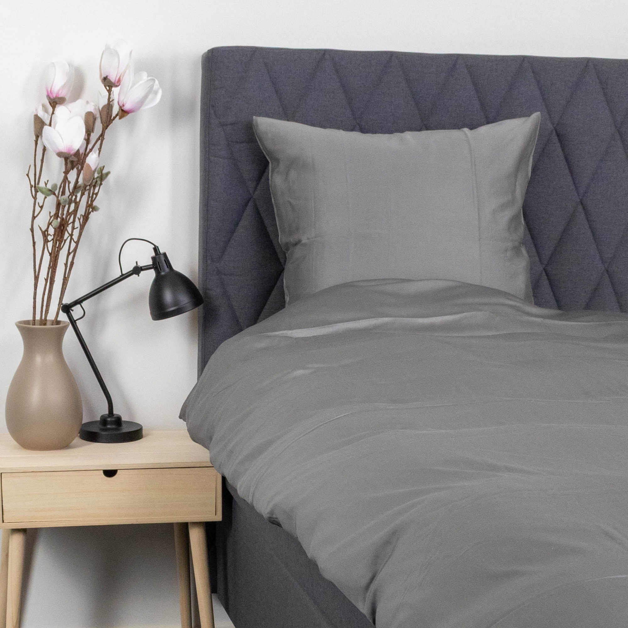 It is a glossy, tightly woven and incredibly soft sweet bamboo bedding in modern, timeless, and serene colours that fit perfectly into any interior design. The soft bed set made from 100% natural bamboo not only looks wonderful but is also an absolute delight to sleep with. Bamboo bedding is remarkably breathable, absorbent, temperature-regulating, and sweat-wicking, easily meeting your needs for a good and optimal night's sleep. Bamboo has antibacterial properties and contributes to fighting bacteria. This makes the bedding ideal for allergy sufferers and those with sensitive skin, as bamboo's natural properties create a calming environment where dust mites cannot thrive.