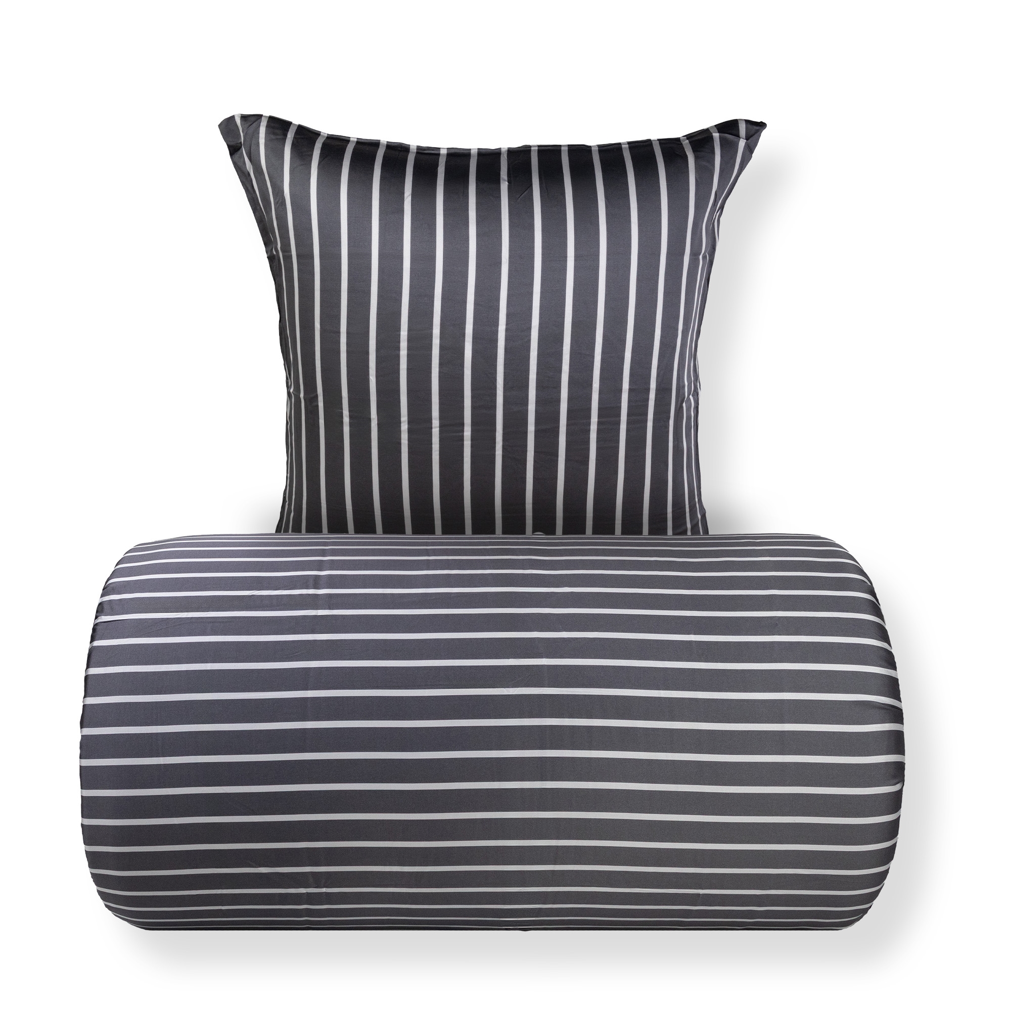 Bamboo double bedding - 100% Natural bamboo - 200x220 cm - Grey striped - Satin woven double bed set