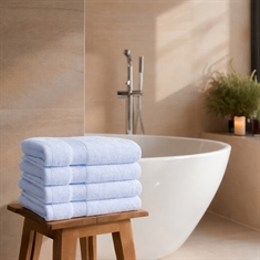 Experience an exclusive combination of softness, absorbency and sleek design with this light blue bamboo towel from By Borg. The towel measures 50x100 cm and is made in a luxurious quality with 60% bamboo and 40% cotton, providing an extra soft and pleasant feel against the skin. The elegant border gives the towel a classic and stylish look that fits well in any bathroom. Ideal as a slightly larger hand towel by the sink, where it quickly and effectively dries hands after use, or as a smaller towel to dry off with after a shower.