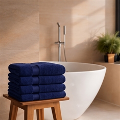 Experience an exclusive combination of softness, absorbency and clean design with this dark blue bamboo towel from By Borg. The towel measures 50x100 cm and is made in a luxurious quality with 60% bamboo and 40% cotton, ensuring a luxurious feel. Ideal as a slightly larger hand towel by the sink, where it quickly and effectively dries hands after use, or as a smaller towel to dry off with after a shower.