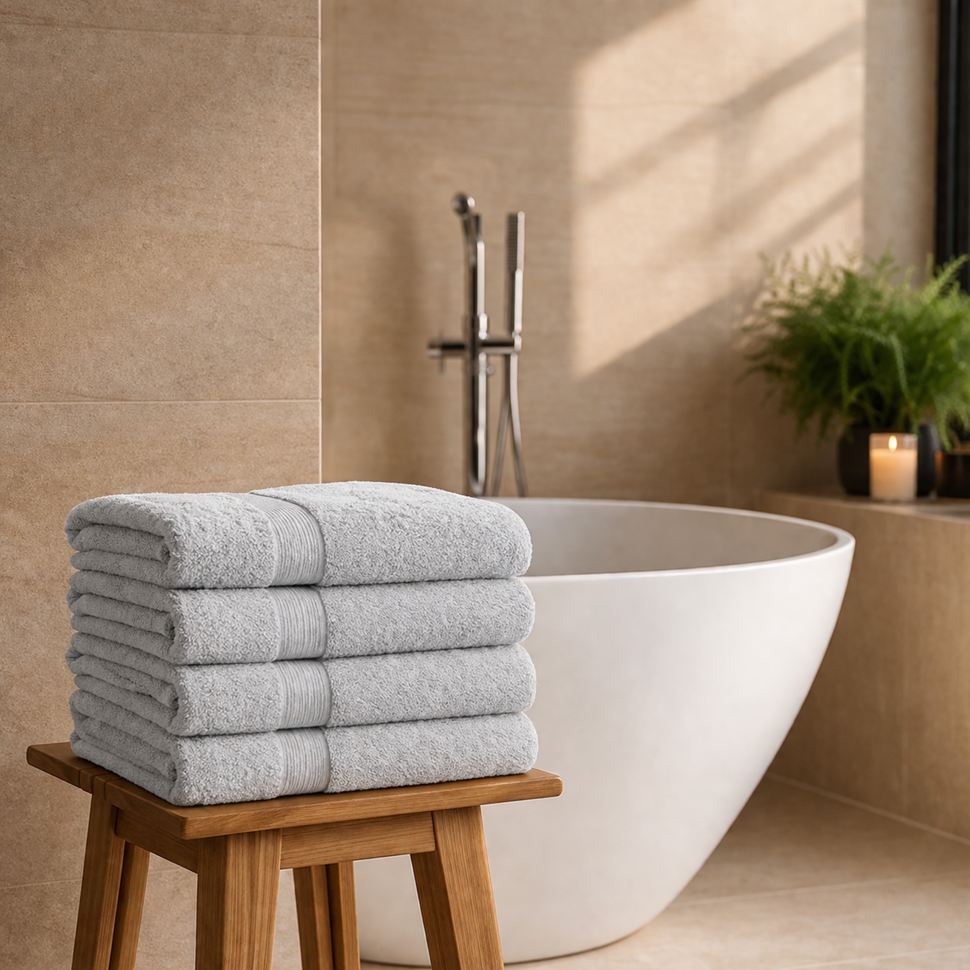 Bamboo fibres are known for their natural softness and high absorbency. The hollow structure of the fibres means the towel can absorb more water and at the same time dry faster than traditional cotton towels. The combination with durable cotton provides optimal longevity and therefore makes them perfect for everyday use.