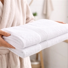 Experience an exclusive combination of softness, absorbency and clean design with this white bamboo towel from By Borg. The towel measures 50x100 cm and is made in a luxurious quality with 60% bamboo and 40% cotton, providing a luxurious feel. Ideal as a slightly larger hand towel at the sink, where it quickly and effectively dries hands after use, or as a smaller towel to dry off with after a shower.