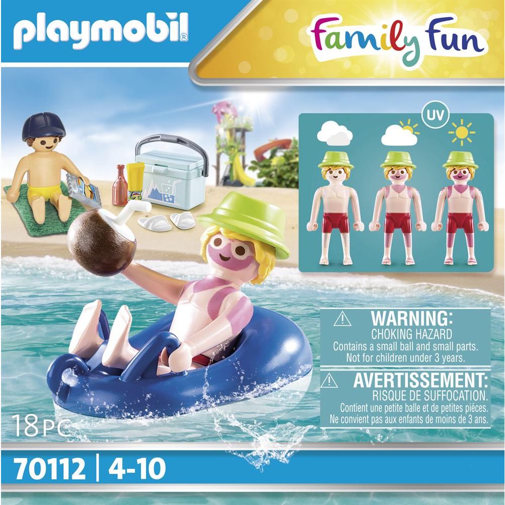 Home » Toy » Playmobil » PLAYMOBIL Family Fun Bather with swim ring - PL70112 - PLAYMOBIL Family Fun Playmobil Family Fun Great price:10,99EUR Few in stock Quantity Add to basket See more from: Playmobil Family Fun Item number: LEGPL70112 Do you have questions about the product? Exposure to UV light causes the figure's skin color to become partially red. The deck floats on water. Return to PLAYMOBIL Family Fun