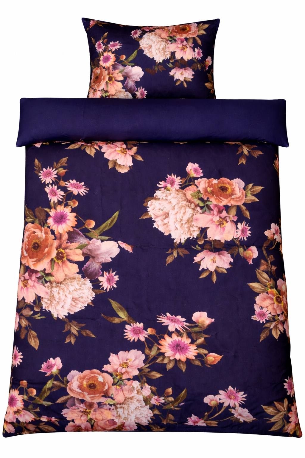 Reversible bedding with digitally printed floral design in 100% cotton satin