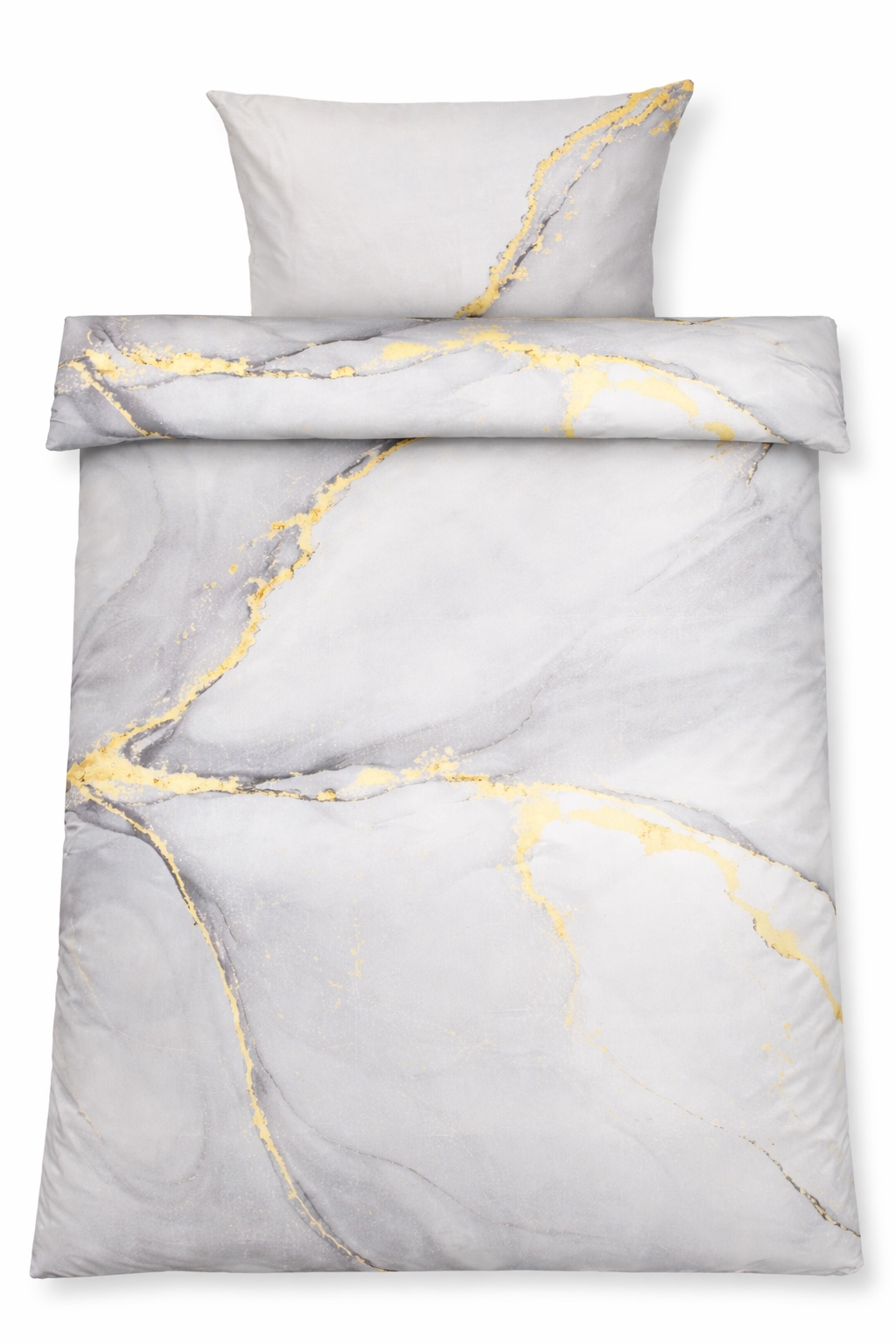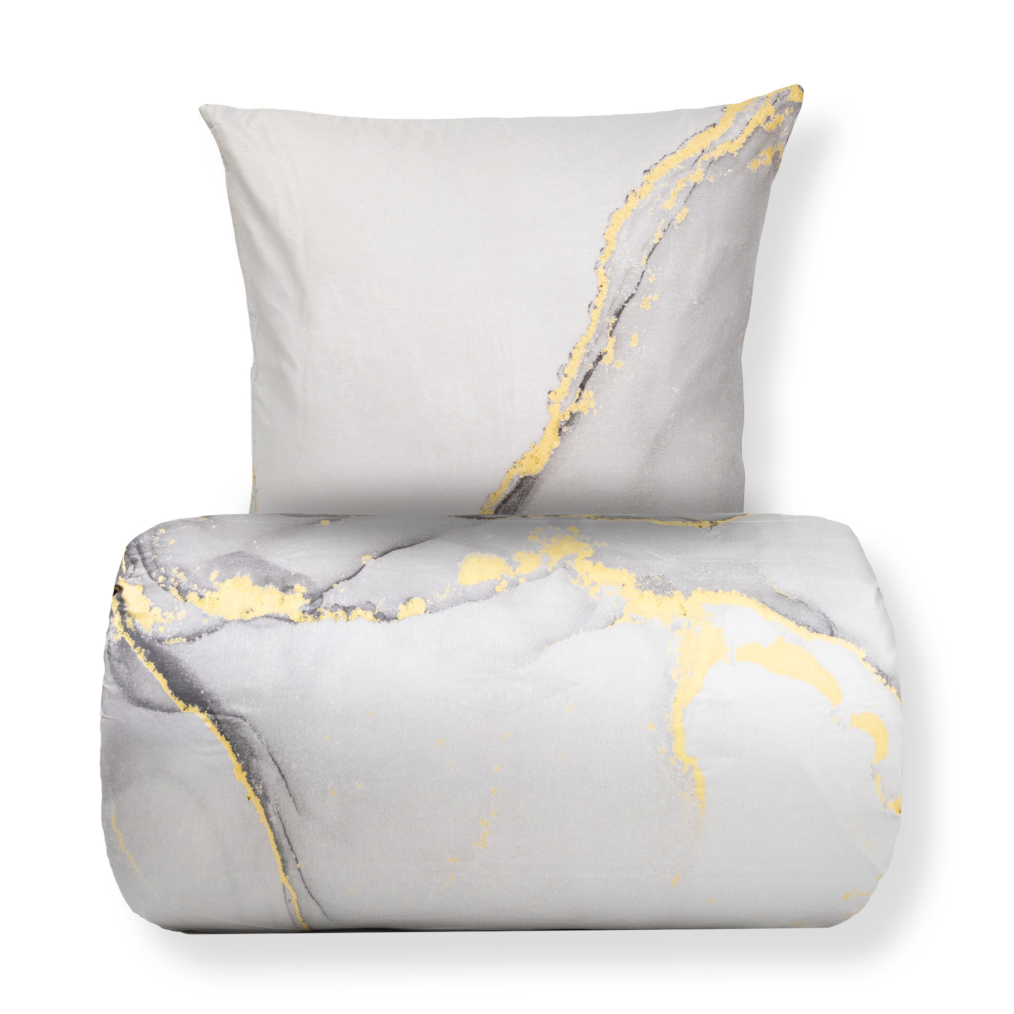 Give the bedroom an elegant and modern expression with this cotton satin bed linen in a gray marble look. The detailed marble digital print creates an exclusive 3D-like depth in the design, where the fine golden lines and soft colour transitions provide a sophisticated and artistic look.