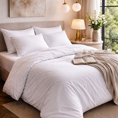 Home » Bedding » Single bedding » Single bedding 140x200 cm Bed linen 140x200 cm - 100% cotton satin - Høie Of Scandinavia - London White Save56% Høie Of Scandinavia 122,4954,49EURSave 68,- In stock Select size Select a variant Quantity Add to basket See more from: Høie Of Scandinavia Item number: 4205-1 Read our bed linen guide See our large selection of sheets See our large selection of duvets 140x200 Do you have questions about the product? Soft quality that feels comfortable against the skinSatin weave that gives a smooth and exclusive surfaceLight sheen in the fabric gives an exclusive look Duvet cover: 140x200 cm Pillowcase: 1 pc. 60x63 cm Material: 100% cotton satin Weave: Extra fine 220TC satin weave (Thread count = number of threads per square inch) Colour: White Design: London White Brand: Høie of Scandinavia Closure: Duvet cover with zipper, pillowcase with overlap Wash: 60° Tumble dry: Yes Can be ironed: Yes Certification: EASY CARE treated, which means it does not crease after washing. Certification: STANDARD 100 by OEKO-TEX® (M1VLY64E3). Your guarantee that the product is free from harmful chemicals. Plain cotton satin bed linen from Høie The bed linen is made of 100% cotton satin with an extra fine 220TC satin weave, which gives an incredibly soft and smooth surface with a discreet sheen. The high quality ensures a comfortable and luxurious sleeping experience where comfort and aesthetics go hand in hand. A major advantage of cotton satin is its durability. The fabric is tightly woven and strong, which makes the bed linen resistant to wear and repeated washing. At the same time it often becomes even softer over time, without affecting shape or quality. This makes cotton satin a good and practical choice, as it combines luxury with everyday functionality. The bed linen is STANDARD 100 by OEKO-TEX® certified, which is your guarantee that the product is free from harmful chemicals. It is also Easy Care treated, which ensures less creasing and better shape after washing. Easy Care makes your bed linen extra soft and easy to iron. See all our cotton satin bed linen here Høie Of Scandinavia Høie of Scandinavia is a well-known Scandinavian textile brand that has had a long history since 1850, especially within bed linen, duvets and pillows. Høie is known for high quality, timeless design and comfort - this is reflected in their Nordic style and functionality. Høie combines traditional craftsmanship with modern production and materials to create products that are both comfortable to sleep in and durable in everyday life. See the full range from Høie here Return to Single bedding 140x200 cm Customers also bought Mattress protector - 140x200 cm - Boiled Cotton - Nordic Textile Mattress Set In stock 81,9968,49EUR Add to basket 5 pieces Chef's tea towels - 50x100 cm white tea towels with blue chequered pattern In stock 20,499,99EUR Add to basket Silk pillow - 60x63 cm - Medium height pillow - Butterfly Silk In stock 81,9968,49EUR Add to basket Junior bedding 100x140 cm - 100% organic cotton satin - White jacquard-woven stripes In stock 54,4934,49EUR Add to basket Diamond Cotton towel - 100% cotton - Bath towel 70x140 cm - Diamond - Light blue In stock 27,4917,99EUR Add to basket Unicorn bedding - 100% cotton - Children's bedding 140x200 cm - Light blue with rainbows and stars In stock 47,9927,49EUR Add to basket Junior bedding 100x140 cm - Summer white - 100% cotton satin - By Night bedding set In stock 54,4934,49EUR Add to basket Floral bedding - 100% cotton satin - Junior bedding 100x140 cm - Sand colored In stock 54,4934,49EUR Add to basket Bedding 140x200 cm - cotton satin - White with blue floral print Few in stock 81,9931,49EUR Add to basket Summer duvet - Extra light - 140x200 cm - Fibre duvet - Zen Sleep In stock 34,4912,49EUR Add to basket