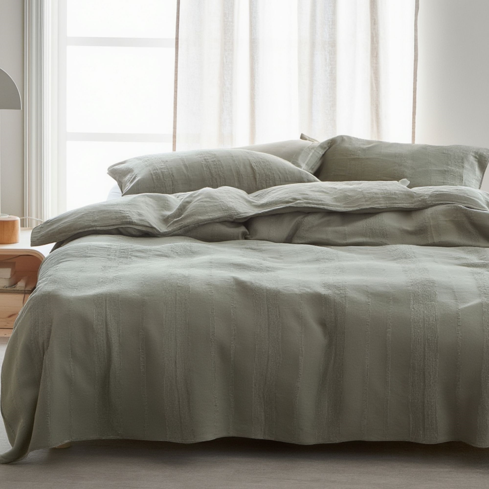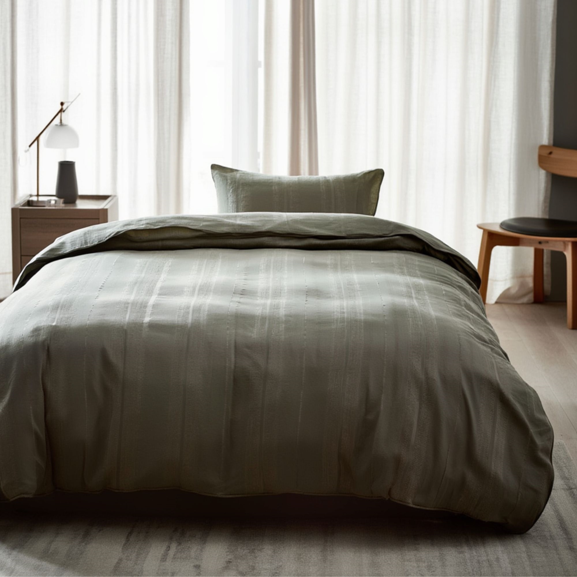 Home » Bedding » Single bedding » Extra long bedding 140x220 cm Bed linen 140x220 cm - 100% cotton - Høie of Scandinavia - Midnatt Mist Green Save45% Høie Of Scandinavia 149,9981,99EURSave 68,- In stock Select size Select a variant Quantity Add to basket See more from: Høie Of Scandinavia Item number: 6239-2 Read our bedding guide See our wide range of sheets See our wide selection of duvets 140x220 Do you have questions about the product? Breathable material that promotes a good night's sleepSoft bed linen that feels comfortable against the skinAchieve a comfortable night's sleep all night long Duvet cover: 140x220 cm Pillowcase: 1 pc. of 60x63 cm Material: 100% extra fine cotton Weave: Extra fine 220TC (Thread count = number of threads per square inch) Color: Green Design: Midnatt Mist Green Brand: Høie of Scandinavia Closure: Duvet cover with zipper, pillowcase with overlap Wash: 60°C Tumble dry: Yes Suitable for ironing: Yes Certification: Nordic Swan Ecolabel for a better future Certification: EASY CARE treated, which means it does not crease after washing. Certification: MADE IN GREEN by OEKO-TEX® (M1YLRXR91). Your guarantee that the product is free from harmful chemicals. Striped bedding in extra-fine cotton from Høie This bedding set from Høie Of Scandinavia is made from 100% extra-fine cotton with a fine 220TC weave, which provides a soft and smooth surface with a subtle sheen. Cotton is a natural material that feels soft against the skin and is also breathable, allowing the body to release heat and moisture during the night. This makes cotton bed linen suitable for year-round use and for both warm and cooler nights. Cotton is known for being robust and durable, able to withstand frequent washing and daily use without affecting the quality. The bedding is MADE IN GREEN by OEKO-TEX® certified, which guarantees that the product is free from harmful chemicals. It is also Easy Care treated, which ensures less creasing and better shape retention after washing. Easy Care makes your bedding extra soft and easy to iron, and the Nordic Swan Ecolabel supports a better future. Cotton satin bedding is therefore an obvious choice for those who want extra comfort and a hotel-like feel at home, while still having a natural material that is easy to care for and pleasant to sleep in. See all our cotton bedding here Høie Of Scandinavia Høie of Scandinavia is a well-known Scandinavian textile brand that has a long history since 1850, especially within bed linen, duvets and pillows. Høie is known for high quality, timeless design and comfort - which is reflected in their Nordic style and functionality. Høie combines traditional craftsmanship with modern production and materials to create products that are both comfortable to sleep in and durable for everyday use. See the full range of Høie here Return to Extra long bedding 140x220 cm Customers also bought Bedding 140x200 cm - 100% cotton - Høie of Scandinavia - Midnatt Mist Green In stock 136,4968,49EUR Add to basket Bedding 140x200 cm - 100% cotton - Høie of Scandinavia - Midnatt Dus Blue In stock 136,4968,49EUR Add to basket Bamboo towels - Towel pack 4 pcs. - Bamboo/cotton - Charcoal gray Few in stock 54,4940,99EUR Add to basket Bamboo sheet - Topper fitted sheet 140x200x8 cm - Sand - 100% bamboo - Sheet for mattress topper In stock 108,9947,99EUR Add to basket Bedding 140x220 cm - 100% cotton satin - Gray wide stripes In stock 163,4968,49EUR Add to basket Temp. control Temperature-regulating junior mattress protector - 70x160 cm - Children's mattress protector - Cool Zone Temperature Control In stock 108,9954,49EUR Add to basket Stretch fitted sheet 70x160 cm - White jersey sheet for junior bed In stock 20,4910,99EUR Add to basket Stretch fitted sheet 180x200 cm - Black jersey sheet - 100% cotton - Fitted sheet for double bed In stock 68,4934,49EUR Add to basket Bed wetting sheet - 70x160 cm - White - waterproof sheet for junior bed - Borg Living In stock 38,4919,49EUR Add to basket Ventilating All-season duvet - Muskox down duvet with class 1 muskox down - 140x220 cm - SLEEP TECH By Borg Air flow down duvet In stock 476,49190,49EUR Add to basket