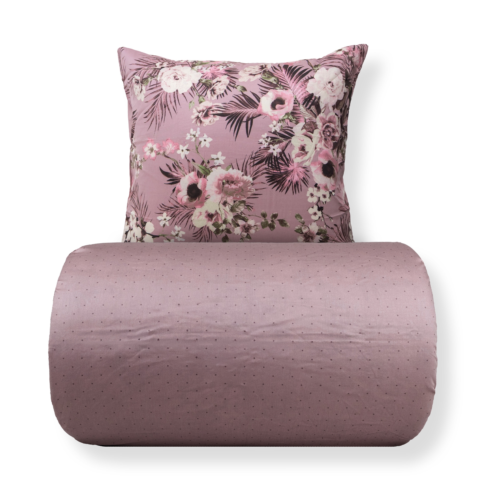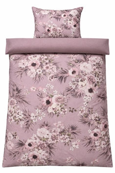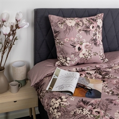 Create an atmospheric and elegant ambiance in the bedroom with this beautiful bedding set in 100% cotton satin. The bed linen combines a decorative floral print with a calmer dotted design on the reverse, so you can easily change the look in the bedroom simply by turning the bed linen.