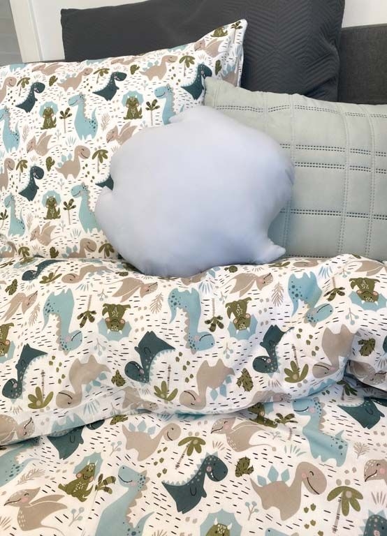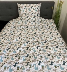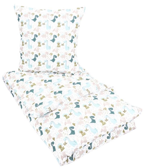 Home » Bedding » Children's bedding » Children's bedding 140x200 cm Bedding 140x200 cm - Dinosaur bedding - Duvet cover in 100% cotton - By Night bedding set Save80% Licens 68,4913,99EURSave 55,- Few in stock Quantity Add to basket See more from: Licens Item number: 107-1 Read our bedding guide Explore our extensive collection of sheets Discover our wide range of 140x200 duvets Do you have questions about the product? Bedding with dinosaurs100% cotton140x200 cm Duvet cover: 140x200 cm Pillowcase: 60x63 cm Material: 100% cotton Weaving: 220TC (Thread count = number of threads per square inch) Colour: White, blue and sand - bedding set with print Motif: Dinosaurs in green and blue shades Design: Same motif on both sides Closure: Duvet and pillow with hidden zip closure Washing: 60° Tumble drying: Yes Ironing: Yes Certification: STANDARD 100 by OEKO-TEX® (20180K0658) Bedding featuring a charming print of dinosaurs in green and blue shades. Let the little (or big) dinosaur enthusiast fall asleep surrounded by their favourite creatures. The bed linen is crafted from 100% soft cotton and looks splendid in any child's room. By Night signifies high quality and Danish design. By Night creates exquisite sheets and bedding for both children and adults, placing a strong emphasis on contemporary trends, ensuring they are always made in fashionable colours and designs. Discover beautiful and soft quality sheets here Return to Children's bedding 140x200 cm Customers also bought Dinosaur bedding - 100% cotton - Children's bedding 140x200 cm - Sand In stock 47,9913,99EUR Add to basket Muscovy down duvet 100% down - 140x200 cm - Hypoallergenic - All-season duvet - Zen Sleep duvet In stock 312,99108,99EUR Add to basket Bedding 140x200 cm - Giraffe, Elephant and Zebra - Reversible bedding set - 100% Cotton - Children's bedding In stock 81,9934,49EUR Add to basket Glow-in-the-dark Unicorn bedding - 100% cotton - Children's bedding 140x200 cm - Glow in the dark In stock 54,4927,49EUR Add to basket Child's first pillow - Pillow 60x63 cm - Low pillow 1 chamber pillow - Children's pillow - Zen Sleep In stock 68,4934,49EUR Add to basket Bedding 140x200 cm - Construction work machines - Cotton satin bedding - By Night bedding set In stock 81,9931,49EUR Add to basket Stretch fitted sheet 90x200 cm - Grey jersey stretch fitted sheet - IN Style fitted sheet In stock 23,498,49EUR Add to basket Duvet 140x200 cm - All-season duvet with European down - Zen Sleep hypoallergenic duvet In stock 244,9981,99EUR Add to basket Bed wetting sheet - 70x160 cm - White - waterproof sheet for junior bed - Borg Living In stock 38,4919,49EUR Add to basket Stretch fitted sheet 90x200 cm - White jersey sheet - IN Style fitted sheet In stock 23,498,49EUR Add to basket