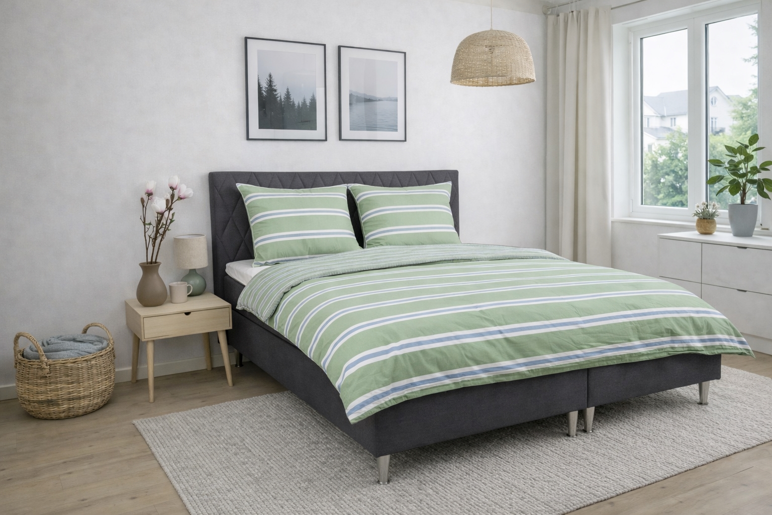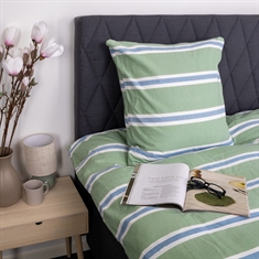 Home » Bedding » Single bedding » Single bedding 140x200 cm Bedding 140x200 cm - Cotton flannel - Green with stripes Save50% Nordstrand Home 68,4934,49EURSave 34,- In stock Select size Select a variant Quantity Add to basket See more from: Nordstrand Home Item number: 255-1 Do you have questions about the product? Warm and cozy bedding set that feels comfortable against the skinBreathable and soft material with high comfortIncredibly soft and plush surface Duvet cover: 140x200 cm Pillowcase: 1 pc. 60x63 cm Material: 100% cotton flannel Weave: 200TC (Thread count = number of threads per square inch) Color: Green Design: Stripe Brand: Nordstrand Home Closure: Duvet and pillow covers with internal zipper Wash: 60° Tumble dry: Yes Ironing: Yes Certification: STANDARD 100 by OEKO-TEX® (20182KO658). Your guarantee that the product is free from harmful chemicals. Cotton flannel bedding with stripes - extra soft and warm Create a cozy and inviting atmosphere in the bedroom with this striped flannel bedding in green with blue and white details. The soft cotton flannel provides a warm and comfortable feel - perfect for chilly nights. The bedding is made from 100% cotton flannel with a dense 200TC weave. Flannel is characterized by cotton fibers that are brushed on the surface. This treatment creates the familiar napped, plush texture that makes flannel bedding especially comfortable to sleep in. The brushed surface traps heat close to the body and gives a lovely warm sensation without the material losing its natural breathability. Cotton flannel is therefore an ideal choice if you often feel cold at night or want warmer bedding during the autumn and winter months. At the same time, the material is durable and stays soft wash after wash. The striped design combines attractive blue and white stripes with a green background, creating a calm and harmonious expression in the bedroom. A striped bedding that feels warm and looks elegant. The duvet and pillow covers close with an internal zipper, which ensures a neat and practical finish. The bedding is certified according to STANDARD 100 by OEKO-TEX, which is your guarantee that the product has been tested and is free from harmful chemicals. It can be washed at 60 degrees and tolerates both tumble drying and ironing. See all our flannel bedding here Nordstrand Home With Nordstrand Home you are guaranteed home textiles in Danish design - in a Nordic style. Nordstrand Home places great emphasis on the feeling of well-being in a beautiful yet relaxed environment. With Nordstrand Home you don't have to compromise; you will always find products in classic and fashionable colors. Nordstrand Home – So you feel at home! See the full range from Nordstrand Home here Return to Single bedding 140x200 cm Customers also bought 3 pcs. Chef's tea towels - 50x100 cm white tea towels with blue chequered pattern In stock 12,4910,99EUR Add to basket 5 pieces Chef's tea towels - 50x100 cm white tea towels with blue chequered pattern In stock 20,499,99EUR Add to basket Weighted Blanket 140x200 cm - 4 kg Weighted Blanket with Glass Beads - Zen Sleep Duvets In stock 136,4968,49EUR Add to basket Mattress topper - 180x200 cm, 5 cm high - NASA Memory Foam - Borg Living - Ergonomic mattress topper In stock 544,49190,49EUR Add to basket Makeup mirror - Turiform Urban mirror - Classic white - Height 35cm In stock 74,9940,99EUR Add to basket Diamond Cotton washcloth - 100% cotton - Washcloth 30x30 cm - Diamond - Anthracite gray In stock 9,995,49EUR Add to basket Mermaid bedding - 100% cotton - Children's bedding 140x200 cm - Mermaid soul In stock 47,9927,49EUR Add to basket Bed linen 140x200 cm - Cotton satin - Blue marble / dotted print In stock 81,9931,49EUR Add to basket Pokémon bedding - 100% cotton - Children's bedding 140x200 cm - Pikachu, Charizard, Venusaur, Blastoise and Meowth In stock 47,9927,49EUR Add to basket Children's blanket - Peppa Pig - 100x140 cm - Soft and lovely fleece blanket - Borg Living In stock 17,996,99EUR Add to basket