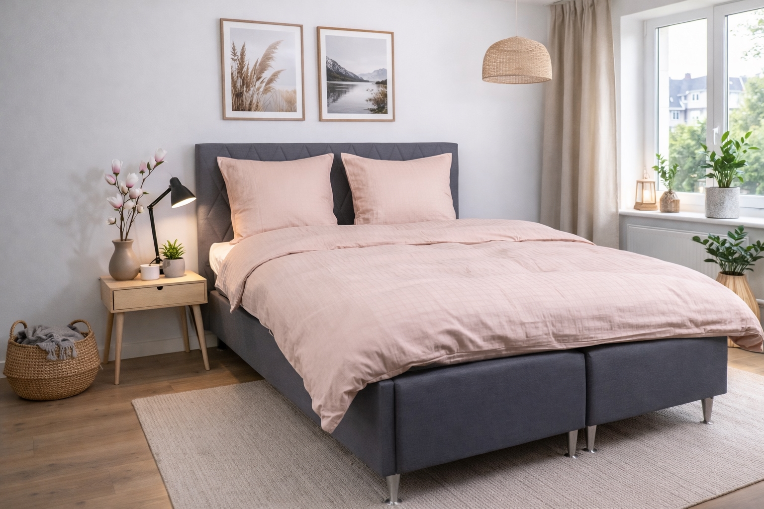 The pink squares provide a modern and sophisticated look that fits perfectly into both minimalist and classic bedrooms. The duvet and pillowcase close with a hidden zipper, giving a neat finish and keeping the duvet securely in place.