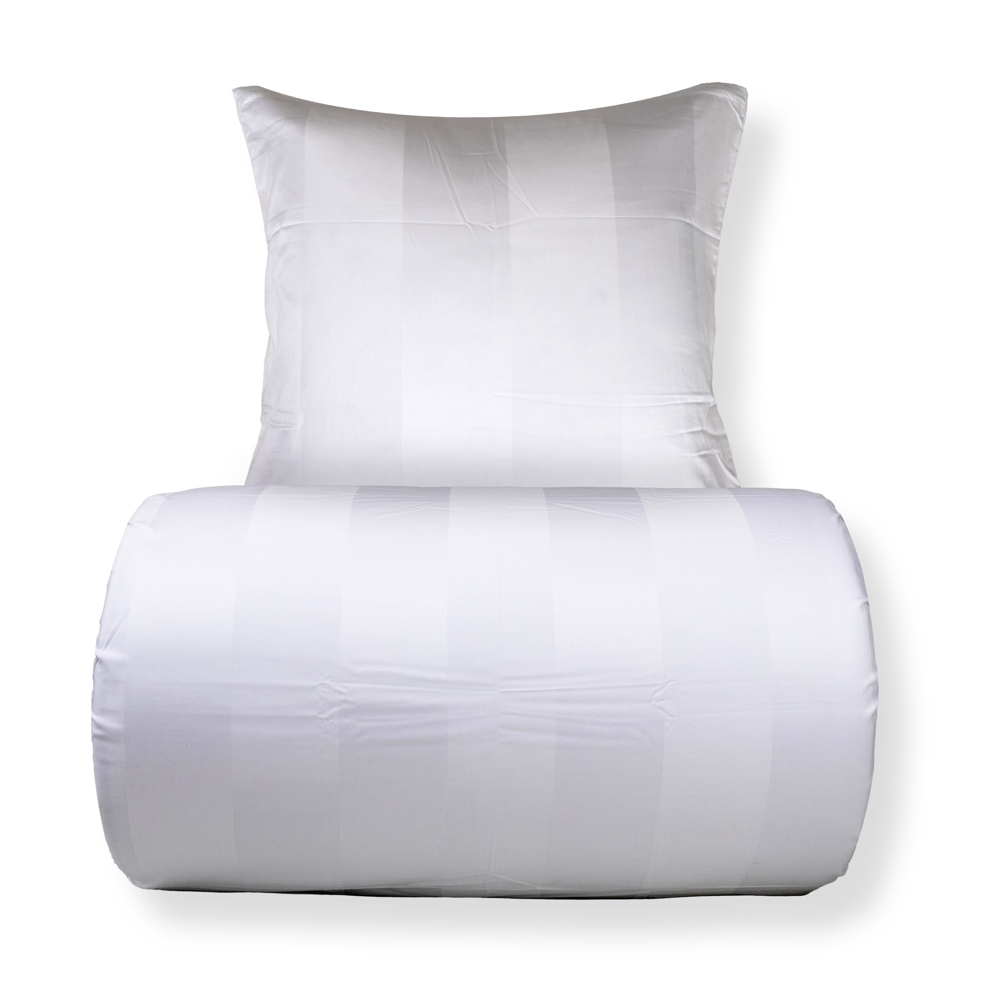 Create an exclusive hotel atmosphere in the bedroom with this white striped bedding in 100% cotton satin. The elegant design with wide jacquard-woven stripes combines timeless minimalism with luxurious comfort and is perfect for those who want a clean and inviting sleeping environment.