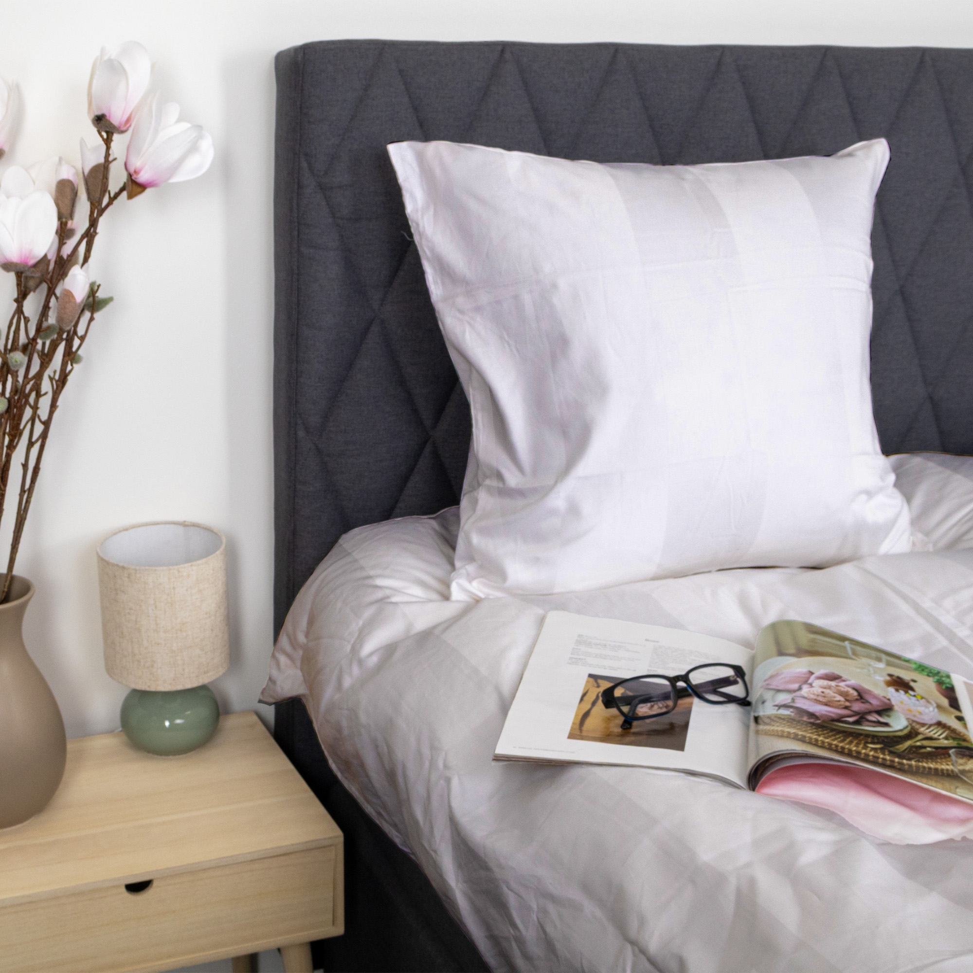 Cotton satin is woven in a fine satin weave, giving an extra smooth, soft and lightly glossy surface against the skin. The extra-dense 400TC weave - corresponding to 400 threads per square inch - ensures an exceptionally fine and durable quality. The higher the thread count, the more durable the weave becomes, and with 400TC you get cotton satin bedding in absolute luxury class. At the same time the natural breathability of the cotton is maintained, providing a comfortable and temperate sleeping environment year-round.