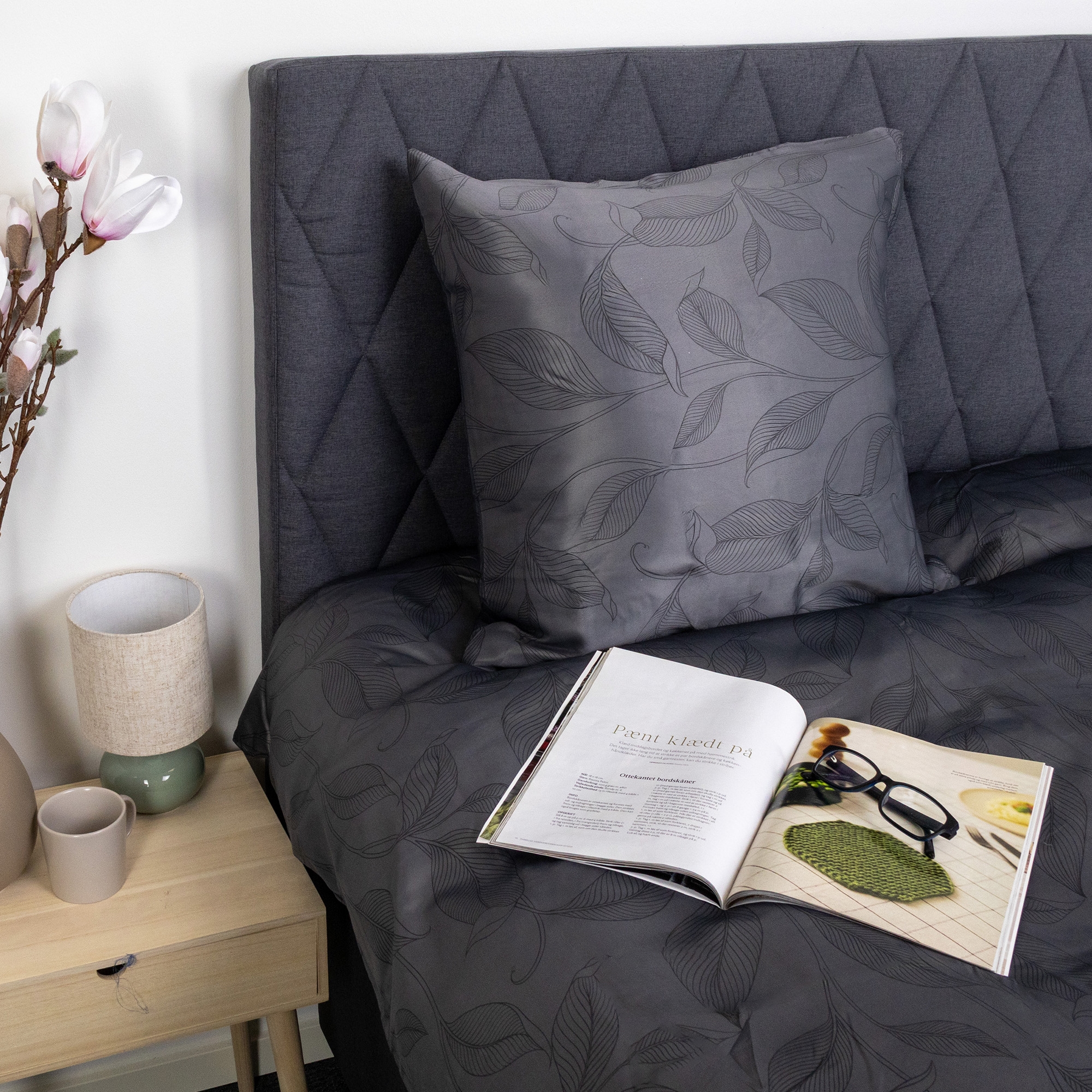 Home » Bedding Bedding 140x200 cm - Satin - Black leaf print Save43% In Style 31,4917,99EURSave 14,- In stock Select size Select a variant Quantity Add to basket See more from: In Style Item number: 648-1 Read our bedding guide See our large selection of sheets See our large selection of 140x200 duvets Do you have questions about the product? Smooth and soft satin surfaceWrinkle-free and quick-drying materialBeautiful color fastness that holds wash after wash Duvet cover: 140x200 cm Pillowcase: 1 pc. measuring 60x63 cm Material: 100% polyester satin Weave: 150TC (Thread count = number of threads per square inch) Color: Black Design: Leaf print Brand: IN Style Closure: Duvet and pillow covers with internal zipper Washing: 40° Tumble drying: Yes, at low temperature Ironing: Yes, at low heat Certification: STANDARD 100 by OEKO-TEX® (2022OK2176). Your guarantee that the product is free from harmful chemicals. Printed polyester satin bedding Create an elegant look in the bedroom with this 100% polyester satin printed bedding set. Polyester satin is woven in a satin weave, which gives a smooth, soft and slightly glossy surface. The material feels incredibly soft against the skin and lies lightly over the body, contributing to a comfortable night's sleep. At the same time, polyester satin is known for its high durability and ability to retain both shape and color wash after wash. The polyester fibers make the bedding quick-drying and very easy to care for. Polyester satin wrinkles minimally, which means the bed looks neat and smooth without much need for ironing. This makes the bedding set ideal for those who want a great result with minimal effort in everyday life. The duvet and pillow covers close with an internal zipper, which keeps the duvet securely in place and gives a clean look. The bedding is certified according to STANDARD 100 by OEKO-TEX®, which is your guarantee that the product has been tested and is free from harmful chemicals. It can be washed at 40 degrees and can be tumble dried at low temperature. See all our polyester satin bedding here IN Style IN Style offers a wealth of fantastic microfiber bedding sets, as well as light and airy fiber summer duvets. IN Style is produced by Borg Design, which has existed since 2013 and is known for its innovation in both quality and design, ensuring that you get the best conditions for a good night's sleep. See the full range from IN Style here Return to Bedding Customers also bought Bedding 140x200 cm - Satin silky bed set - Solid grey bed linen - Soft as silk In stock 31,4913,99EUR Add to basket Bed linen 140x200 cm - Satin - Light blue reversible floral design In stock 31,4917,99EUR Add to basket Bedding 140x200 cm - Satin - Dark blue pattern design In stock 31,4917,99EUR Add to basket Bedding 140x200 cm - Satin - Green reversible floral design In stock 31,4917,99EUR Add to basket Stretch fitted sheet 140x200 cm - Black jersey stretch fitted sheet - IN Style fitted sheet In stock 31,4912,49EUR Add to basket Bedding 140x200 cm - Satin - Brown reversible floral design In stock 31,4917,99EUR Add to basket Bedding 140x200 cm - Satin - Sand-colored leaf print In stock 31,4917,99EUR Add to basket Pillowcase 60x63 cm - Satin - Black leaf print In stock 13,996,99EUR Add to basket Bed linen 140x200 cm - Microfiber - Solid dark blue In stock 34,4913,99EUR Add to basket Bedding 140x200 cm - Microfiber - Beige with leaf print In stock 34,4913,99EUR Add to basket