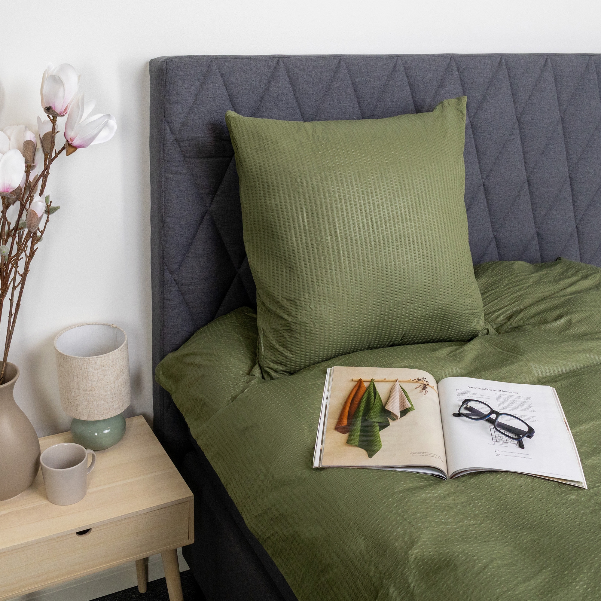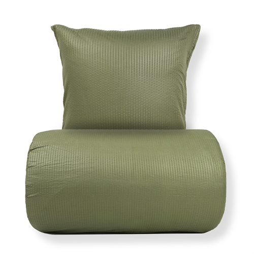 Give the bedroom a fresh and relaxed look with this green microfiber bedding in a classic seersucker weave. The characteristic crepe structure creates a light waffle surface that gives the bedding an airy and lively appearance — while feeling pleasant against the skin.