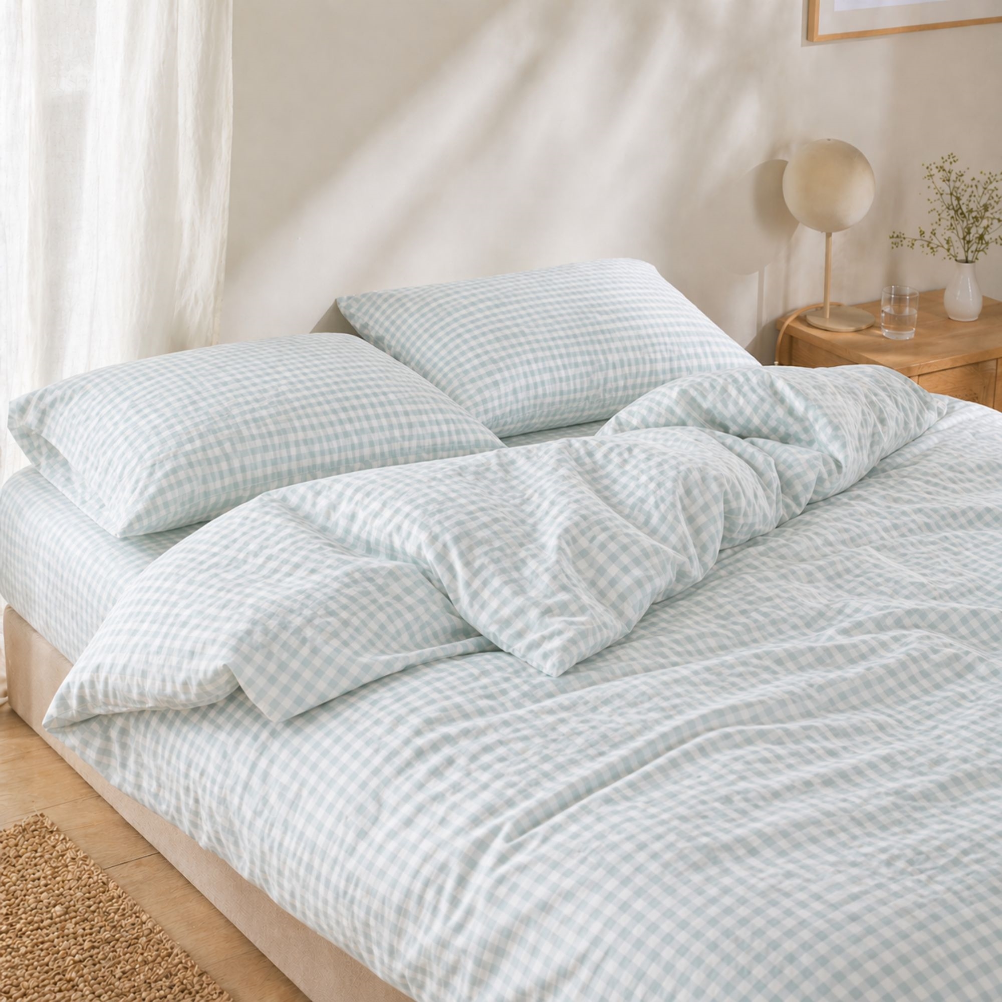 Home » Bedding » Single bedding » Single bedding 140x200 cm Bedding 140x200 cm - 100% cotton - Høie of Scandinavia - Nils Aqua Save50% Høie Of Scandinavia 81,9940,99EURSave 41,- In stock Select size Select a variant Quantity Add to basket See more from: Høie Of Scandinavia Item number: 8005-1 Read our bedding guide See our large selection of sheets Explore our extensive selection of 140x200 duvets Do you have questions about the product? Breathable material that promotes a good night's sleepSoft bedding that feels comfortable against the skinEnjoy a comfortable night's sleep throughout the night Duvet cover: 140x200 cm Pillowcase: 1 pc. 60x63 cm Material: 100% extra fine cotton Weave: Extra fine 220TC (Thread count = number of threads per square inch) Color: Light blue Design: Nils Aqua Brand: Høie of Scandinavia Closure: Duvet cover with zipper, pillowcase with overlap Wash: 60° Tumble dry: Yes Ironing: Yes Certification: EASY CARE treated, which means it does not wrinkle after washing. Certification: STANDARD 100 by OEKO-TEX® (M27MV9GMO). Your guarantee that the product is free from harmful chemicals. Checked bedding in extra fine cotton from Høie This bedding set from Høie Of Scandinavia is made from 100% extra fine cotton with a fine 220TC weave, which gives a soft and smooth surface with a subtle sheen. Cotton is a natural material that feels soft against the skin and is also breathable, allowing the body to release heat and moisture during the night. This makes cotton bedding suitable for year-round use and for both warm and cooler nights. Cotton is known to be robust and durable and can withstand frequent washing and daily use without affecting the quality. The bedding is STANDARD 100 by OEKO-TEX® certified, which is your assurance that the product is free from harmful chemicals. It is also Easy Care treated, which ensures less wrinkling and better shape after washing. Easy Care makes your bedding extra soft and easy to iron. Cotton satin bedding is therefore an obvious choice for those who want extra comfort and a hotel-like feel at home, while still having a natural material that is easy to care for and comfortable to sleep in. See all our cotton bedding here Høie Of Scandinavia Høie of Scandinavia is a well-known Scandinavian textile brand that has a long history since 1850, especially within bedding, duvets and pillows. Høie is known for high quality, timeless design and comfort - which is reflected in their Nordic style and functionality. Høie combines traditional craftsmanship with modern production and materials to create products that are both comfortable to sleep in and durable in everyday life. See the full range of Høie here Return to Single bedding 140x200 cm Customers also bought Bed linen 140x200 cm - 100% cotton - Blue with brown stripes In stock 68,4923,49EUR Add to basket Bedding 140x200 cm - 100% cotton - Green with dark green checks In stock 68,4923,49EUR Add to basket Pillowcase 60x63 cm - Stonewashed - Firm blue In stock 23,4912,49EUR Add to basket Bedding 140x200 cm - 100% Cotton - Reversible with blue harlequin design In stock 68,4923,49EUR Add to basket Bed linen 140x220 cm - 100% cotton - Høie of Scandinavia - Frans Dusty Green In stock 74,9947,99EUR Add to basket Topper fitted sheet 90x200 cm - 100% soft cotton - Height 8 cm - White sheet for mattress topper by Nordstrand Home In stock 36,9913,99EUR Add to basket Pillow - The Intelligent Pillow - 3-chamber Medium Pillow - 60x63 cm - Borg Living In stock 68,4927,49EUR Add to basket Pillow with musk down - "medium" - 60x63 cm - 3-chamber pillow - Borg Living In stock 95,4940,99EUR Add to basket Musk down pillow - Medium - 3-chamber pillow - 60x63 cm - Borg Living In stock 102,4947,99EUR Add to basket Bamboo all-season duvet - Extra soft bamboo and down-like fiber - Allergy-friendly - 140x200 cm - Borg Living In stock 204,4981,99EUR Add to basket