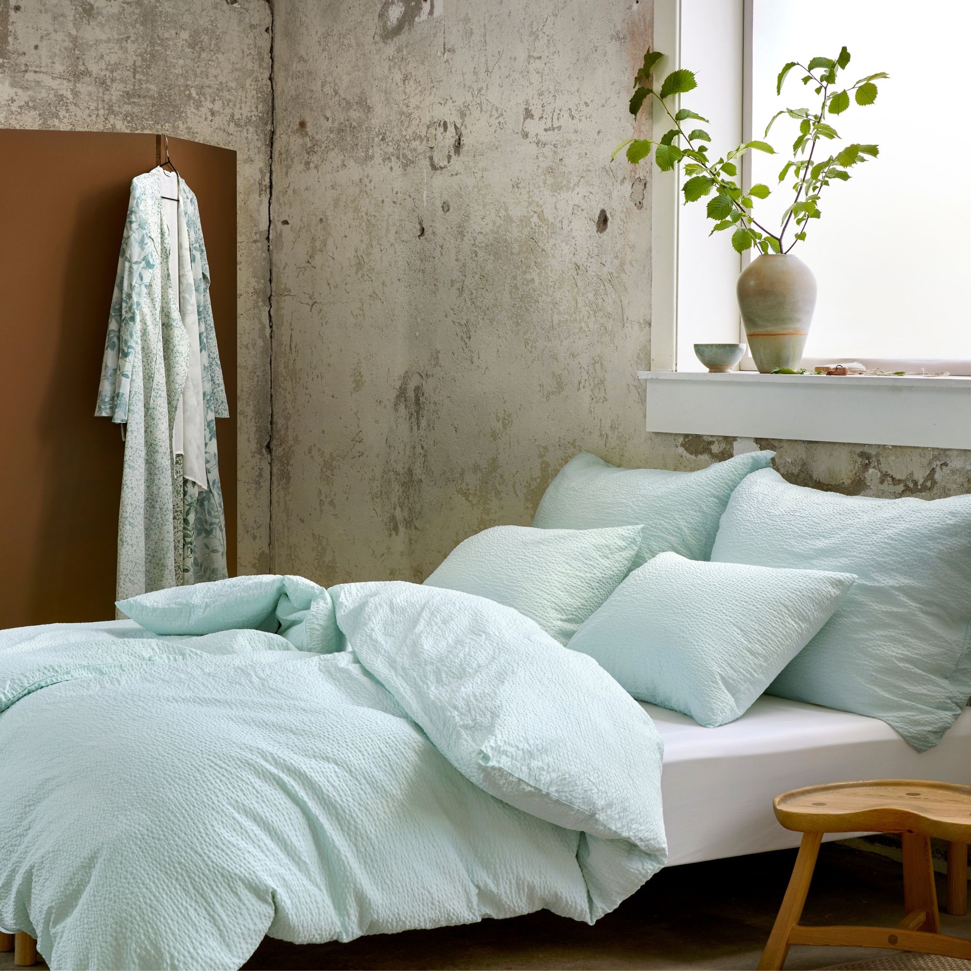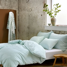 Home » Bedding » Single bedding » Single bedding 140x200 cm Bedding 140x200 cm - Seersucker bedding - Høie Of Scandinavia - Sanna Aqua Save41% Høie Of Scandinavia 81,9947,99EURSave 34,- In stock Select size Select a variant Quantity Add to basket See more from: Høie Of Scandinavia Item number: 8145-1 Read our bedding guide See our large selection of fitted sheets Do you have questions about the product? Seersucker bedding weave with a waffled textureFeels airy and cool against the skinIdeal if you tend to get warm at night Duvet cover: 140x200 cm Pillowcase: 1 pc. 60x63 cm Material: 100% cotton crepe Weave: 148TC Seersucker bedding (Thread count = number of threads per square inch) Colour: Light blue Design: Sanna Aqua Brand: Høie of Scandinavia Closure: Duvet cover with zipper, pillowcase with envelope closure Wash: 60° Tumble dry: Yes Iron: Yes Certification: STANDARD 100 by OEKO-TEX® (19.HIN.85821). Your guarantee that the product is free from harmful chemicals. Plain-coloured crepe bedding from Høie Enjoy a light, airy and comfortable night’s sleep with Seersucker bedding in 100% cotton. This special weave – also known as cotton crepe or crepe bedding – creates the characteristic wavy and lightly wrinkled texture that gives the bed linen its airy look and cool comfort. The Seersucker bedding weave creates small air pockets in the fabric, making the bedding extra breathable and comfortable to sleep in. The surface feels cooler against the skin than traditionally smooth bedding and is therefore particularly suitable for warm nights or if you often get hot while sleeping. At the same time, the cotton retains its natural softness and moisture-absorbing properties, giving you comfortable and dry sleeping comfort. The bedding has a thread count of 148TC, which ensures a good balance between durability, comfort and softness. The waffled texture means the bedding does not need to be ironed to look good – the characteristic appearance is a natural part of the design. The bedding is OEKO-TEX® certified according to STANDARD 100, which means it has been tested and is free from harmful chemicals. It can be washed at 60 degrees and tolerates both tumble drying and ironing See all our seersucker bedding here Høie Of Scandinavia Høie of Scandinavia is a well-known Scandinavian textile brand that has a long history since 1850, especially within bed linen, duvets and pillows. Høie is known for high quality, timeless design and comfort – this is reflected in their Nordic style and functionality. Høie combines traditional craftsmanship with modern production and materials to create products that are both comfortable to sleep in and durable for everyday use. See the full Høie selection here Return to Single bedding 140x200 cm Customers also bought Diamond Cotton washcloth - 100% cotton - Washcloth 30x30 cm - Diamond - Pink In stock 9,995,49EUR Add to basket Pillowcase 60x63 cm - Seersucker bedding - 100% cotton crepe - White plain In stock 27,499,99EUR Add to basket Favourite Musk-down duvet - All-season duvet - The Favorite - 140x200 cm - Best musk-down duvet offer In stock 408,49136,49EUR Add to basket Bedding 140x200 cm - 100% cotton satin - Pink jacquard-woven - Solid-colored In stock 81,9934,49EUR Add to basket Pillow with musk down - 60x63 cm - 3-layer down pillow - Danish Favorite pillow In stock 163,4954,49EUR Add to basket Bedding 140x220 cm - Seersucker bedding - Høie Of Scandinavia - Eilert Beige In stock 95,4954,49EUR Add to basket Bamboo sheet - Topper fitted sheet 180x200x8 cm - Sand - 100% bamboo - Sheet for mattress topper In stock 122,4954,49EUR Add to basket Bed linen 140x200 cm - 100% cotton satin - Blue with light-blue piping In stock 136,4954,49EUR Add to basket Bedding 140x200 cm - Seersucker bedding - Høie Of Scandinavia - Barbro Olive Green In stock 81,9947,99EUR Add to basket Red Christmas tablecloth with hearts - Nervous velour tablecloth - Pack of 3 metres In stock 20,498,49EUR Add to basket