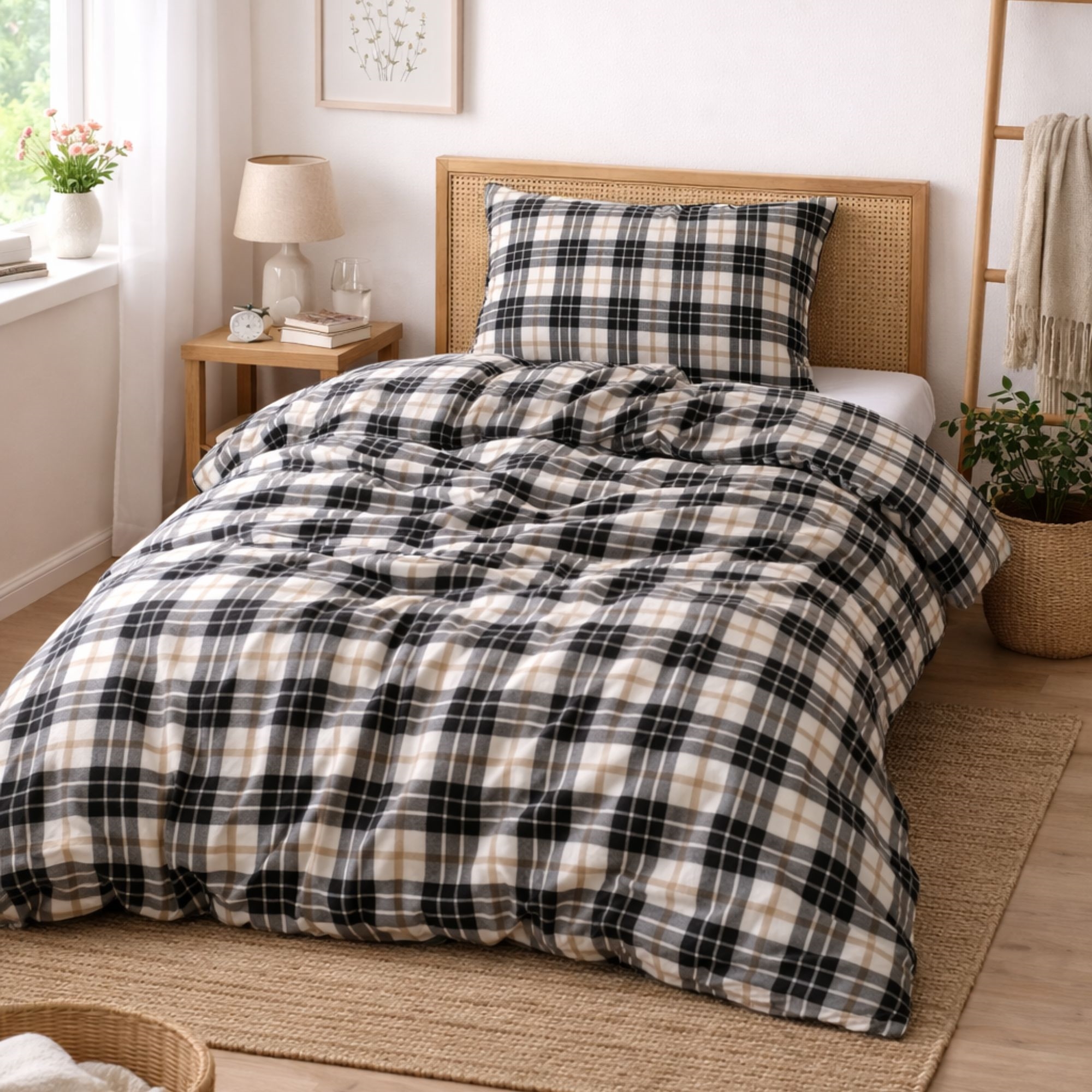 Home » Bedding » Single bedding » Single bedding 140x200 cm Bedding 140x200 cm - 100% cotton flannel bedding - Høie of Scandinavia - Lukas Muted Black 100% Cotton Flannel Save30% Høie Of Scandinavia 68,4947,99EURSave 21,- In stock Select size Select a variant Quantity Add to basket See more from: Høie Of Scandinavia Item number: 8396-1 Read our bedding guide See our large selection of sheets See our large selection of duvets 140x200 Do you have questions about the product? Warm and cozy bedding that feels pleasant against the skinBreathable and soft material with high comfortIncredibly soft and fluffy surface Duvet cover: 140x200 cm Pillowcase: 1 pc. á 60x63 cm Material: 100% cotton flannel bedding Weaving: Extra fine 220TC (Thread count = number of threads per square inch) Color: Black Design: Lukas Muted Black Brand: Høie of Scandinavia Closure: Duvet cover with zipper, pillowcase with overlap Wash: 60° Tumble dry: Yes Suitable for ironing: Yes Certification: EASY CARE treated, which means it does not crease after washing. Certification: MADE IN GREEN by OEKO-TEX® (M2AMSTD86). Your guarantee that the product is free from harmful chemicals. Checked flannel bedding from Høie Make the bed extra inviting with this soft and warm bedding set in 100% cotton flannel. Flannel bedding is the obvious choice for those who feel cold at night and want extra comfort and warmth—especially on chilly nights or during the winter months. Cotton flannel is made by brushing and raising the cotton fibres, which gives an incredibly soft, fluffy and warm surface. The raised structure creates small air pockets in the fabric that effectively help retain heat, while the cotton keeps its natural breathability. This provides a comfortable and balanced night’s sleep without feeling heavy or damp. This flannel bedding has a thread count of 220TC, ensuring a good balance between durability, comfort and softness. The material is suitable for those who often feel cold at night or who want an extra warm bedding set for the cold months. The bedding is MADE IN GREEN by OEKO-TEX® certified, which is your guarantee that the product is free from harmful chemicals. It is also Easy Care treated, which ensures less creasing and better shape after washing. Easy Care makes your bedding extra soft and easy to iron. Cotton satin bedding is therefore an obvious choice for those who want extra comfort and a hotel-like feel at home, while still wanting a natural material that is easy to care for and comfortable to sleep in. See all our flannel bedding here Høie Of Scandinavia Høie of Scandinavia is a well-known Scandinavian textile brand that has a long history since 1850, especially within bedding, duvets and pillows. Høie is known for high quality, timeless design and comfort—reflected in their Nordic style and functionality. Høie combines traditional craftsmanship with modern production and materials to create products that are both comfortable to sleep in and durable in everyday life. See the full selection of Høie here Return to Single bedding 140x200 cm Customers also bought Bathing sandals - Size 36/37 - Unisex - Soft and comfortable slippers In stock 20,495,49EUR Add to basket Flannel sheet 160x200 cm - 100% cotton flannel bed sheet from Høie of Scandinavia In stock 68,4940,99EUR Add to basket Flannel sheet 180x200 cm - 100% Cotton Flannel Fitted Sheet from Høie of Scandinavia Few in stock 68,4940,99EUR Add to basket Bedding 140x200 cm - 100% cotton satin - Black with white piping trim In stock 136,4954,49EUR Add to basket Poppy Cotton towel - 100% cotton - 50x100 cm - Magnolia - Anthracite In stock 13,998,49EUR Add to basket Men's Socks 4 pairs in size 43-45 with The Simpsons In stock 13,998,49EUR Add to basket