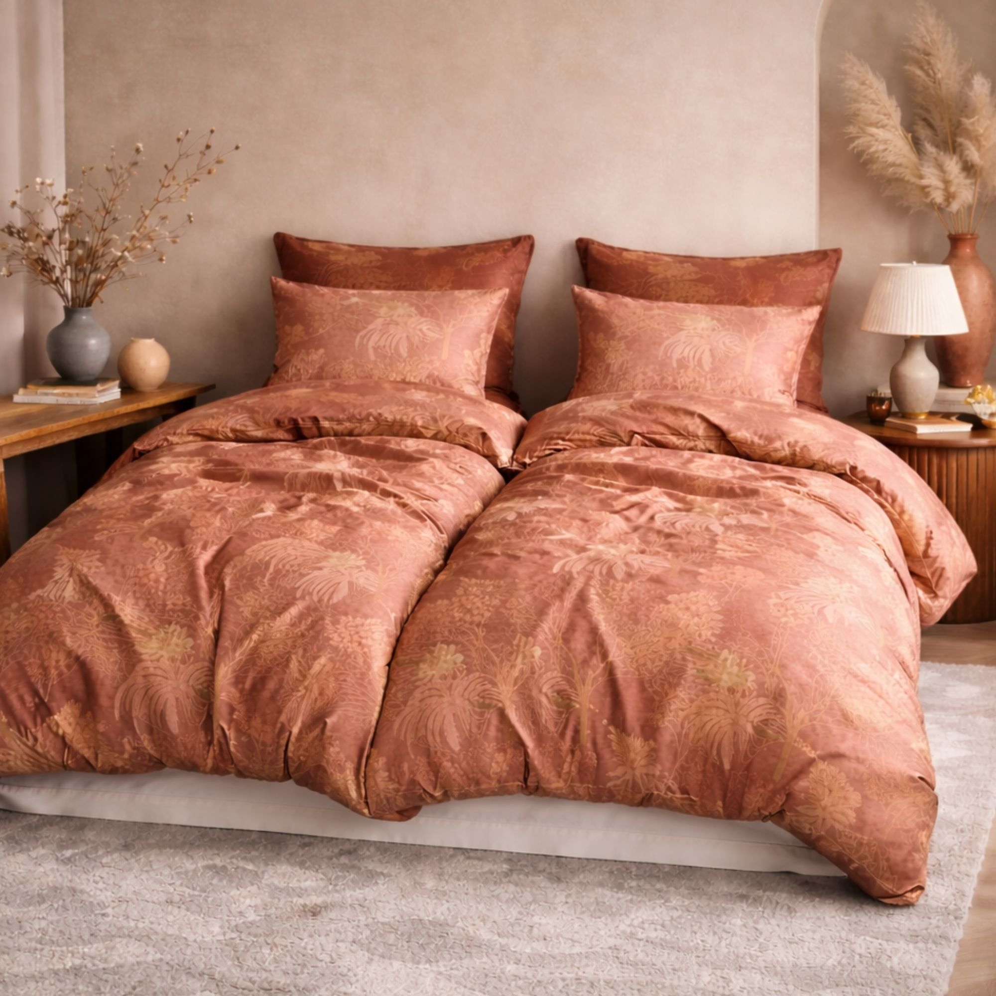 Home » Bedding » Single bedding » Extra long bedding 140x220 cm Bedding 140x220 cm - 100% cotton satin - Høie Of Scandinavia - Margrethe Terracotta Save12% Høie Of Scandinavia 108,9995,49EURSave 14,- In stock Select size Select a variant Quantity Add to basket See more from: Høie Of Scandinavia Item number: 6906-2 Read our bedding guide See our large selection of fitted sheets See our large selection of duvets 140x200 Do you have questions about the product? Soft quality that feels pleasant against the skinSatin weave that gives a smooth and exclusive surfaceSubtle sheen in the fabric gives an exclusive look Duvet cover: 140x220 cm Pillowcase: 1 pc. 60x63 cm Material: 100% cotton satin Weave: Extra fine 220TC satin weave (Thread count = number of threads per square inch) Color: Reddish Design: Margrethe Terracotta Brand: Høie of Scandinavia Closure: Duvet cover with zipper, pillowcase with overlap Wash: 60° Tumble dry: Yes Ironable: Yes Certification: EASY CARE treated, which means it does not crease after washing. Certification: STANDARD 100 by OEKO-TEX® (M24LHANWS). Your guarantee that the product is free from harmful chemicals. Patterned cotton satin bedding from Høie The bedding is made from 100% cotton satin with an extra fine 220TC satin weave, which provides an incredibly soft and smooth surface with a discreet sheen. The high quality ensures a comfortable and luxurious sleep experience where comfort and aesthetics go hand in hand. An advantage of cotton satin is its durability. The fabric is tightly woven and strong, which makes the bedding resistant to wear and repeated washes. At the same time it often becomes even softer over time without affecting shape or quality. This makes cotton satin a good and practical choice as it combines luxury with everyday functionality. The bedding is STANDARD 100 by OEKO-TEX® certified, which is your guarantee that the product is free from harmful chemicals. It is also Easy Care treated, which ensures less creasing and better shape after washing. Easy Care makes your bedding extra soft and easy to iron. See all our cotton satin bedding here Høie Of Scandinavia Høie of Scandinavia is a well-known Scandinavian textile brand that has a long history since 1850, especially within bedding, duvets and pillows. Høie is known for high quality, timeless design and comfort - which is reflected in their Nordic style and functionality. Høie combines traditional craftsmanship with modern production and materials to create products that are both comfortable to sleep in and durable for everyday use. See the full Høie range here Return to Extra long bedding 140x220 cm Customers also bought Rabbit bedding - 100% cotton - Baby bedding 70x100 cm - Blue with rabbits In stock 20,4910,99EUR Add to basket Bed linen with cars - 100% cotton - Baby bedding 70x100 cm - Cars, traffic lights and signs In stock 34,4913,99EUR Add to basket Bedding 140x220 cm - 100% cotton - Gray checked In stock 68,4927,49EUR Add to basket Bed linen 140x220 cm - cotton satin - White floral print In stock 88,4938,49EUR Add to basket Bed linen 140x200 cm - Cotton satin - Big Flower green - Reversible floral print In stock 81,9931,49EUR Add to basket Bedding 140x200 cm - 100% cotton satin - Høie Of Scandinavia - Margrethe Terracotta In stock 95,4968,49EUR Add to basket All-season duvet - Soft fiber duvet - Thick duvet with light & airy fiber fill - 140x220 cm - Høie duvet Gemini Few in stock 149,99108,99EUR Add to basket Topper fitted sheet 180x200 cm - 100% soft cotton - Height 8 cm - Anthracite gray sheet for topper by Nordstrand Home In stock 68,4924,49EUR Add to basket Mattress protector - 90x200 cm - Boil-proof - Borg Living comprehensive mattress protector in 100% Oeko-tex cotton In stock 61,4931,49EUR Add to basket Extra depth fitted sheet 90x200 cm - 100% Organic cotton satin - Grey - GOTS certified extra depth fitted sheet for mattress In stock 61,4931,49EUR Add to basket