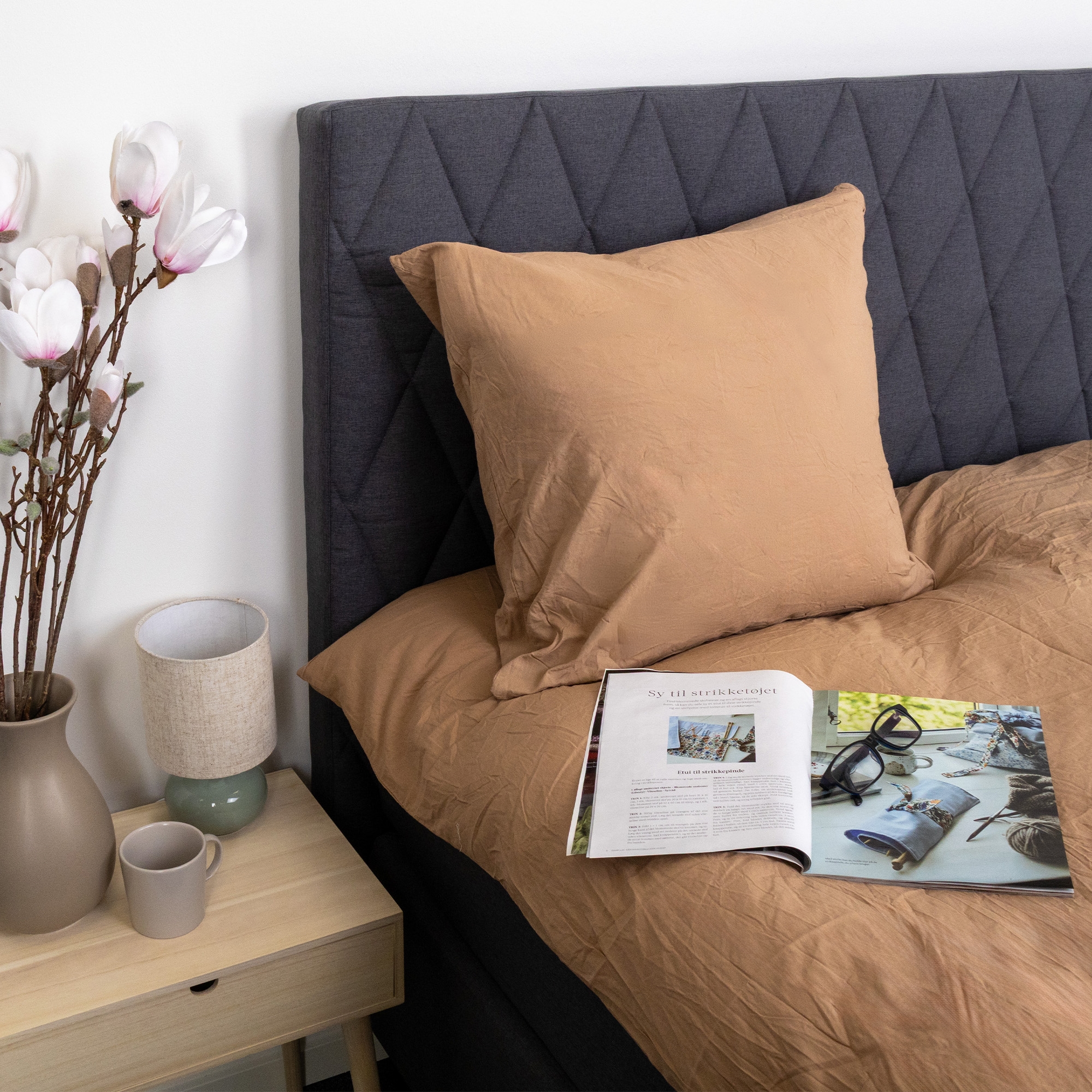The duvet and pillowcases close with an internal hidden zipper, giving a clean look and making it easy to change the bedding. The brown shade and the solid design make the set easy to combine with both light and dark elements in the bedroom.