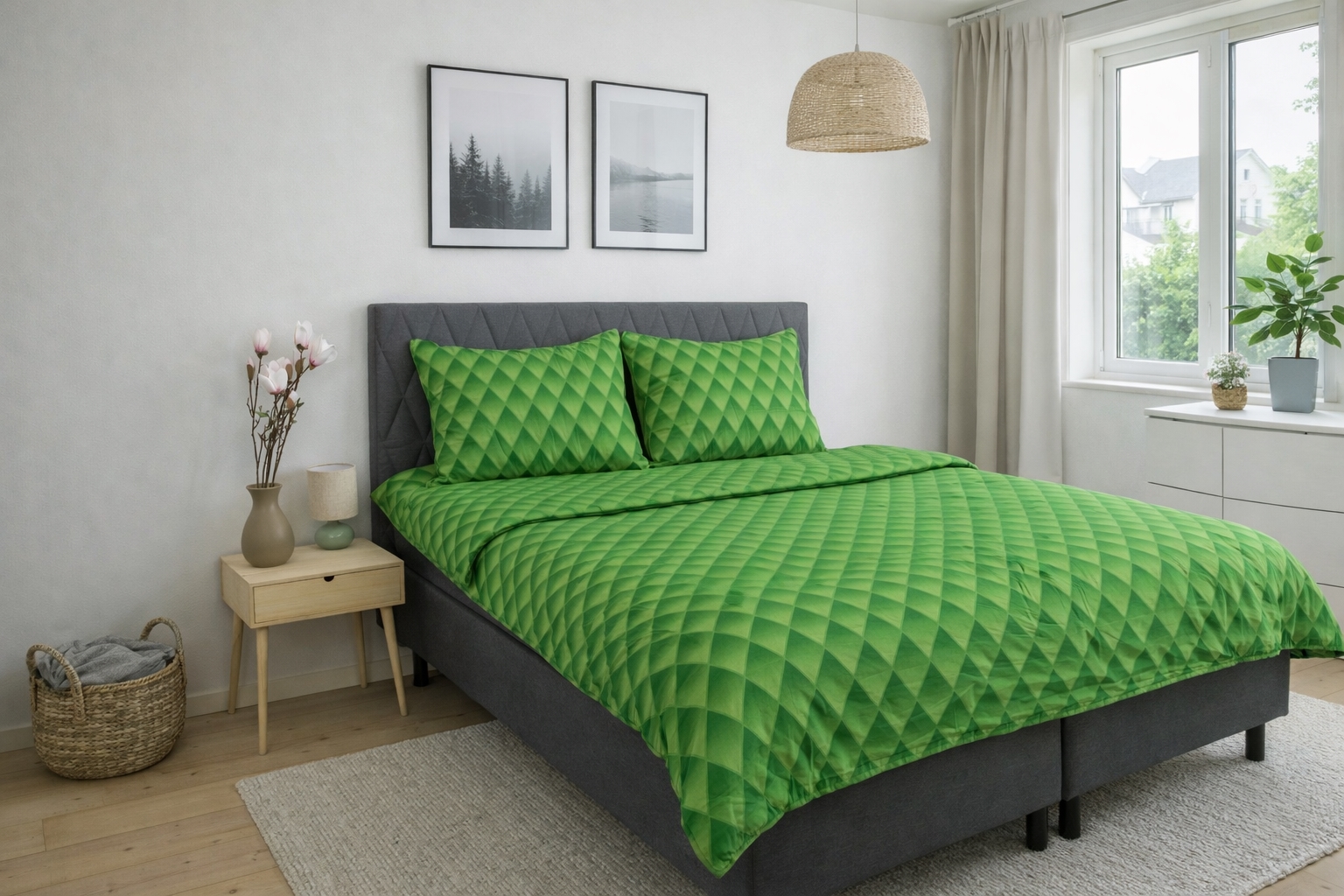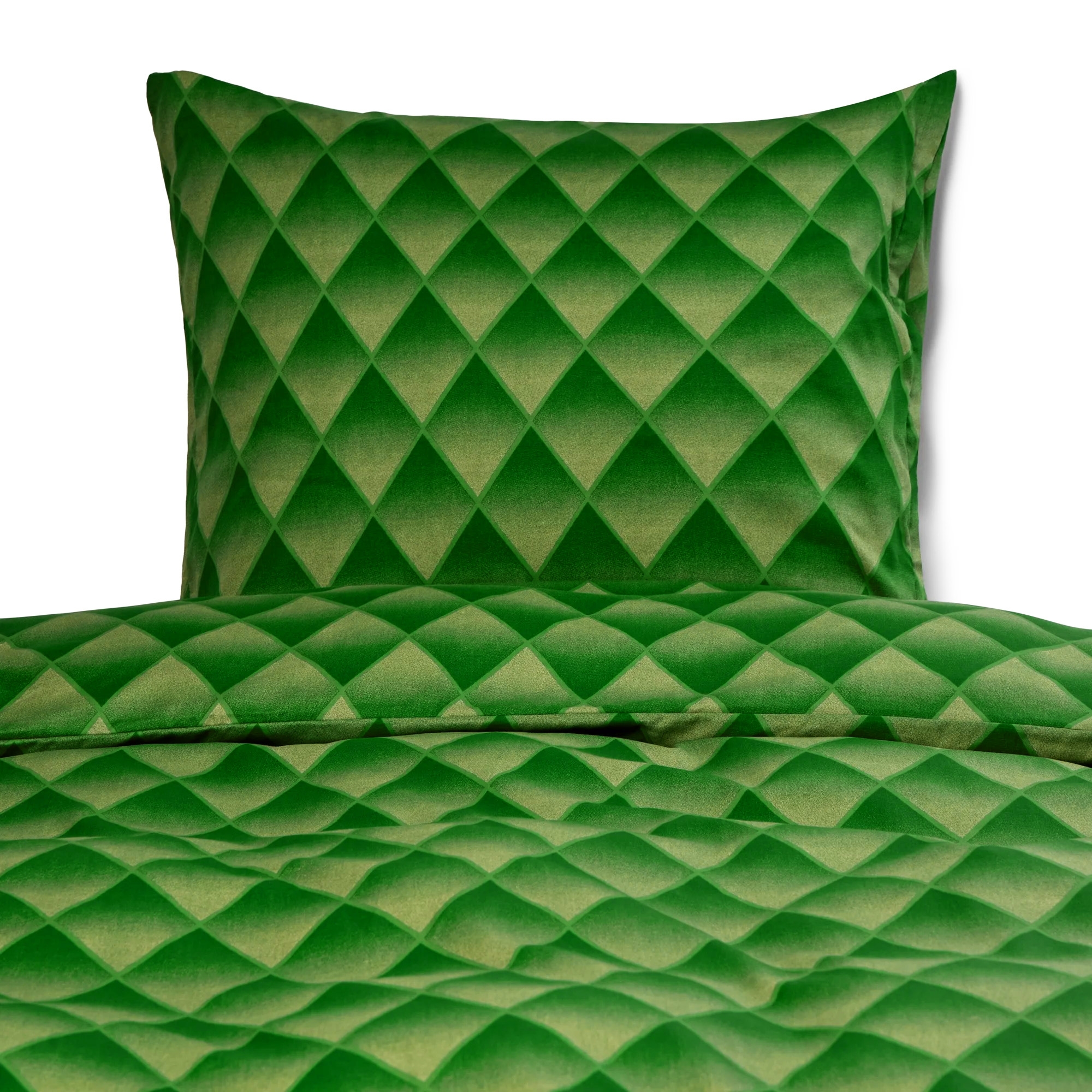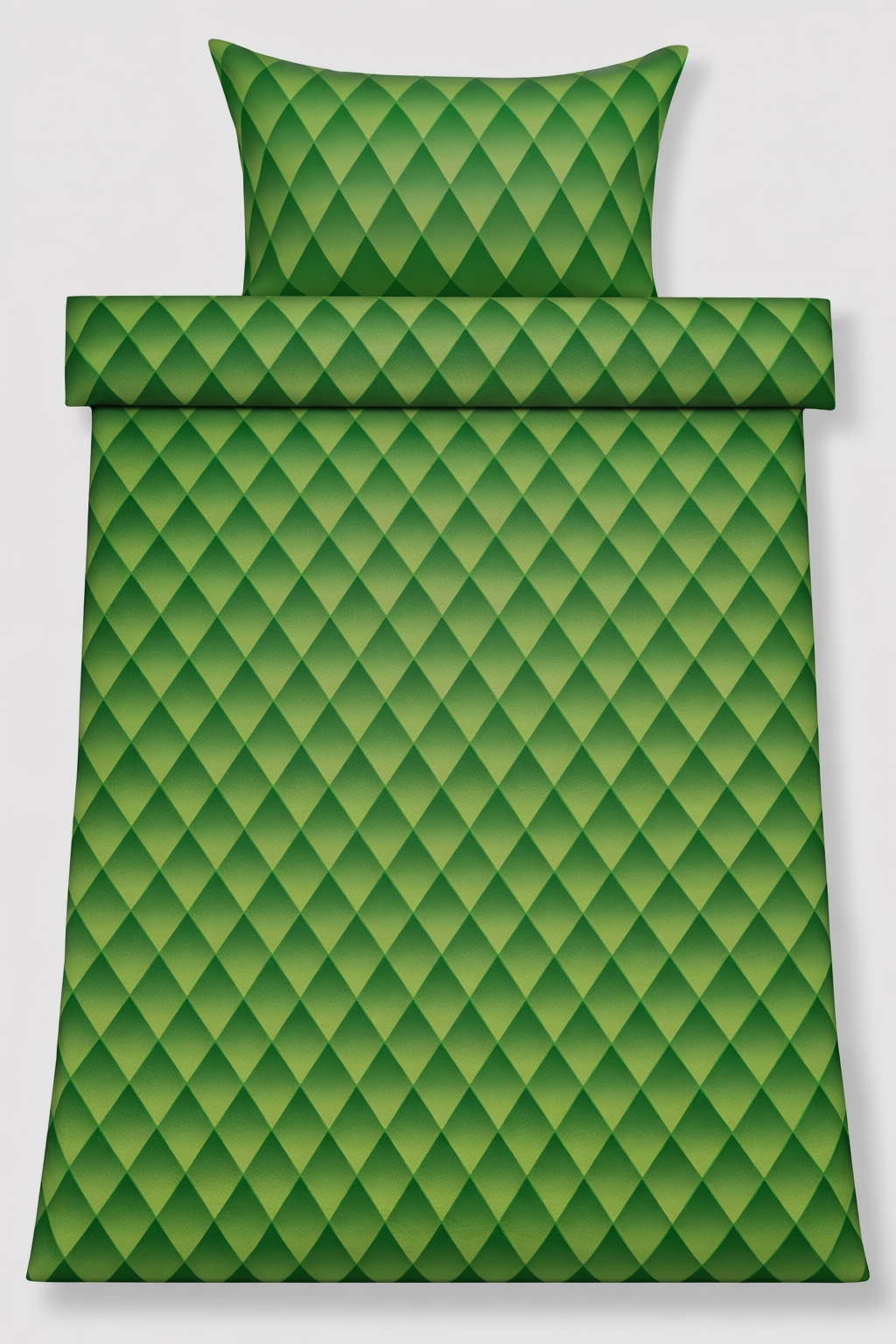 Give the bedroom an exclusive and modern look with this green harlequin bedding in 100% cotton satin. The graduated diamond pattern creates a beautiful 3D effect, where the colors flow harmoniously into each other and give the bed depth and character. A bedding set that adds both personality and elegance to your decor.