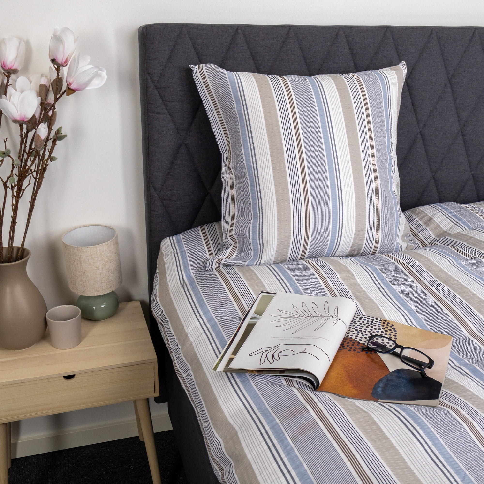 The seersucker weave creates small air pockets in the fabric, making the bedding extra breathable and easy to sleep in. The surface feels cooler against the skin than traditional smooth bedding and is therefore particularly suitable for warm nights or for those who often get hot while sleeping. At the same time, the cotton retains its natural softness and moisture-absorbing properties, giving you comfortable and dry sleeping comfort.