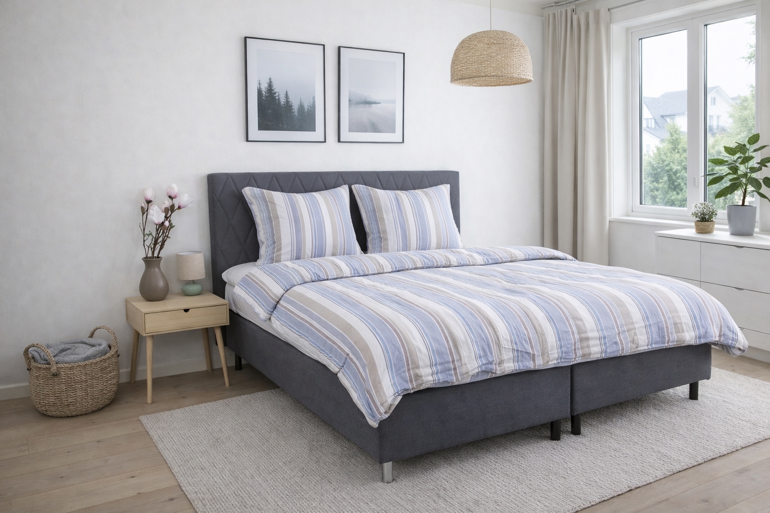 The duvet and pillowcase are closed with a zipper, which makes it easy to change the bedding and keeps both duvet and pillow securely in place throughout the night. The striped design offers a calm and timeless look that fits well in both modern and classic bedrooms.