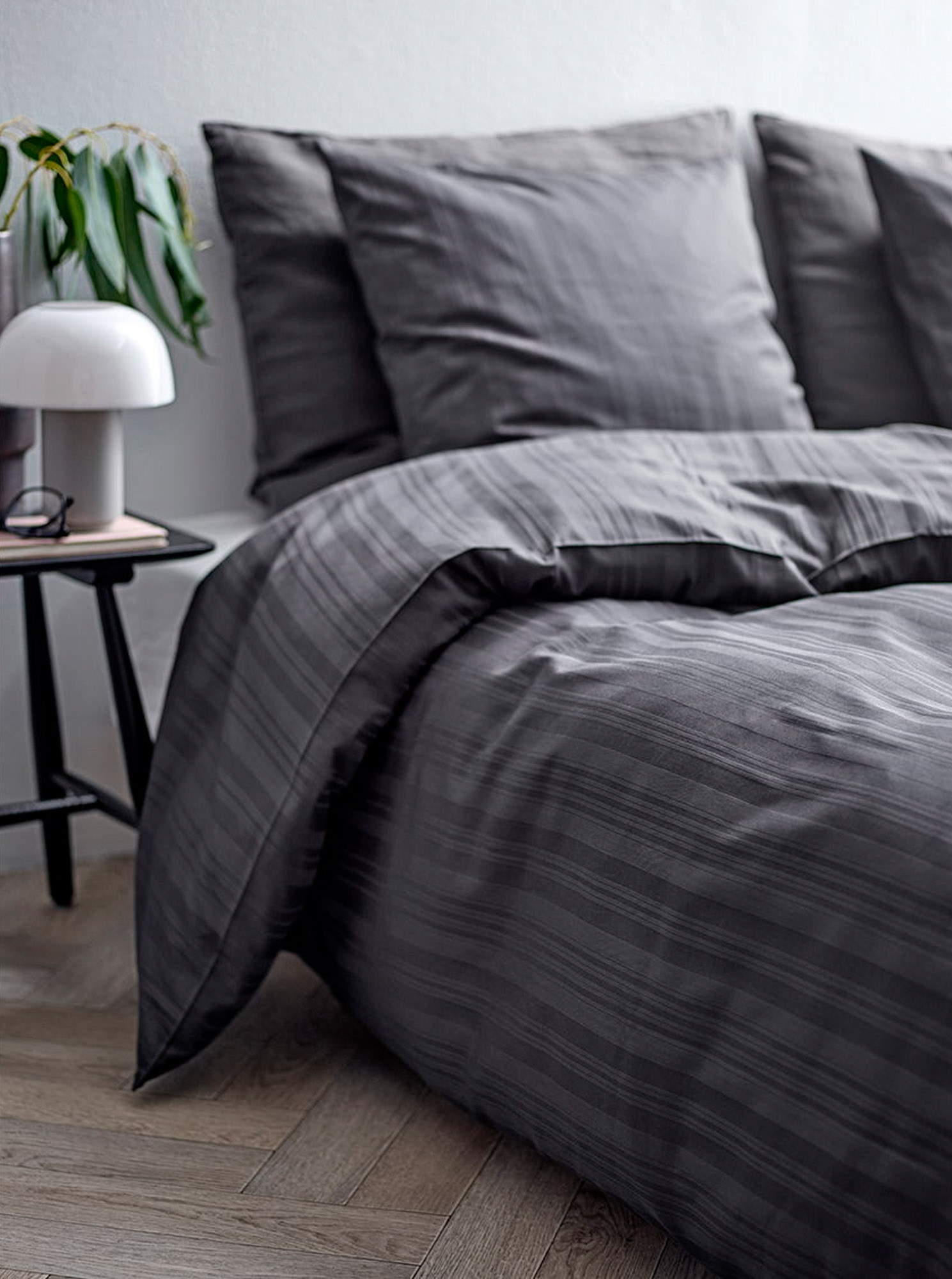 Do you dream of a true hotel feel in the bedroom? With this luxurious damask-woven bedding from Södahl you get a combination of elegant design, great comfort and high quality. The clean striped design in a beautiful anthracite grey gives a calm and exclusive expression that fits perfectly into the Nordic-inspired home.