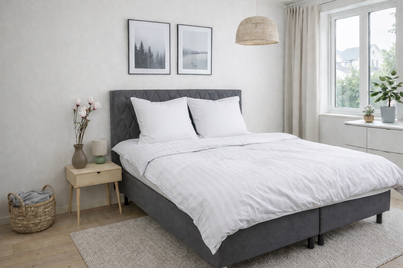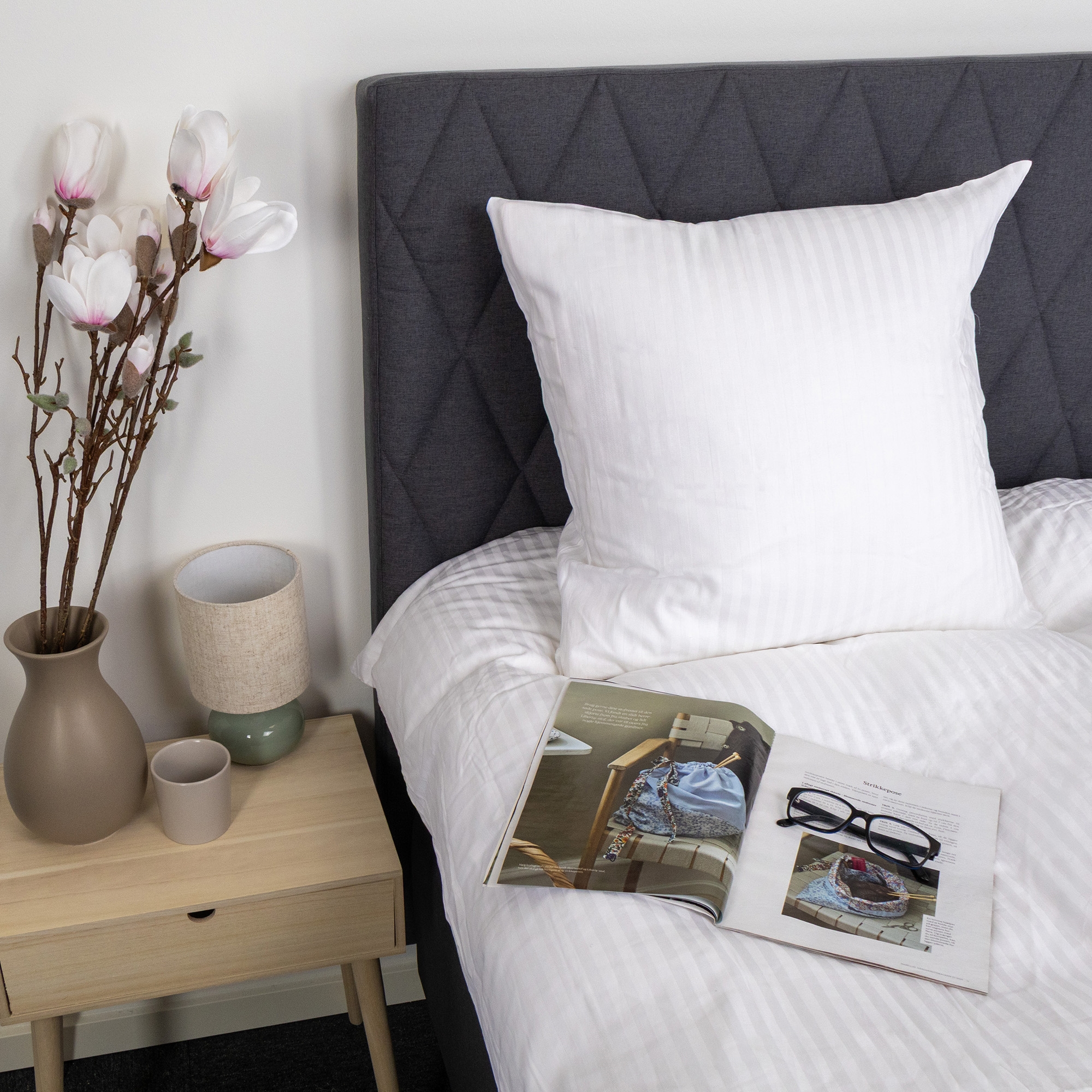 Create an elegant and exclusive look in the bedroom with this white striped bedding in 100% cotton satin. The bedding combines classic design with high comfort and is made for those who want both luxury and functionality in everyday life.