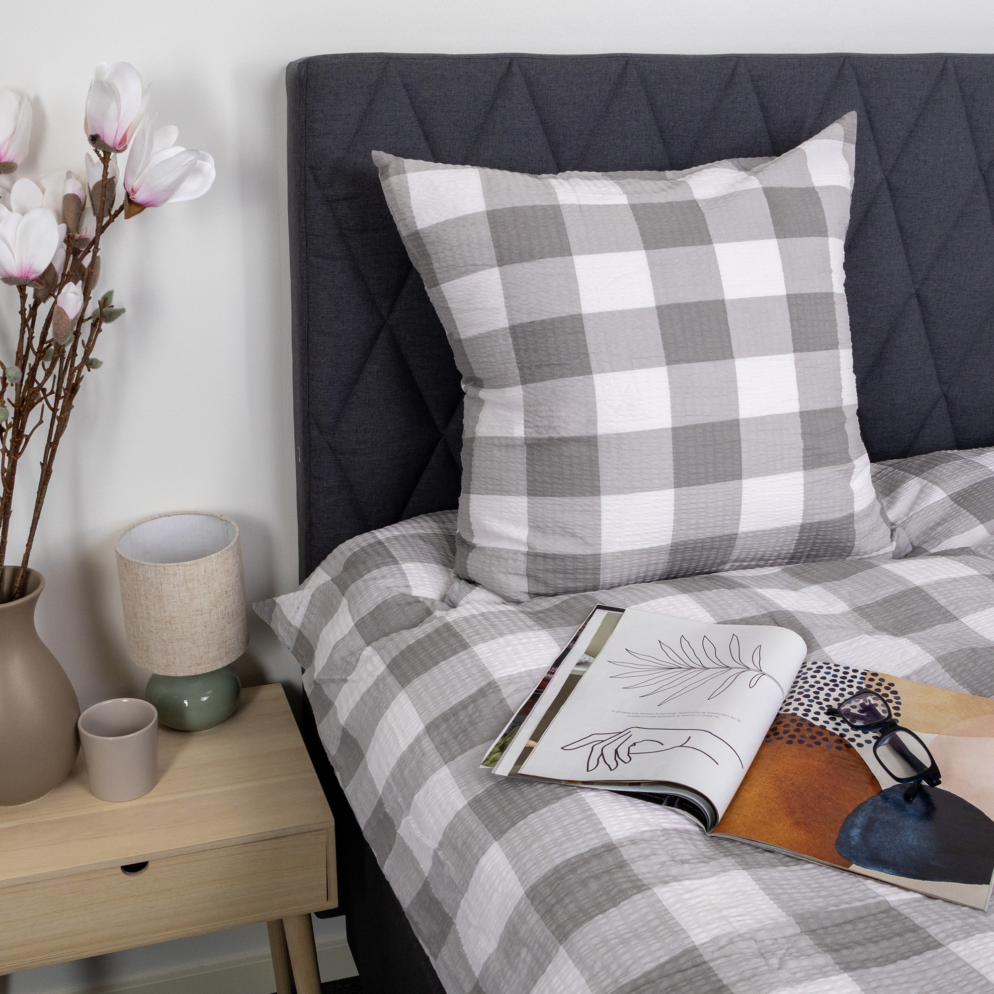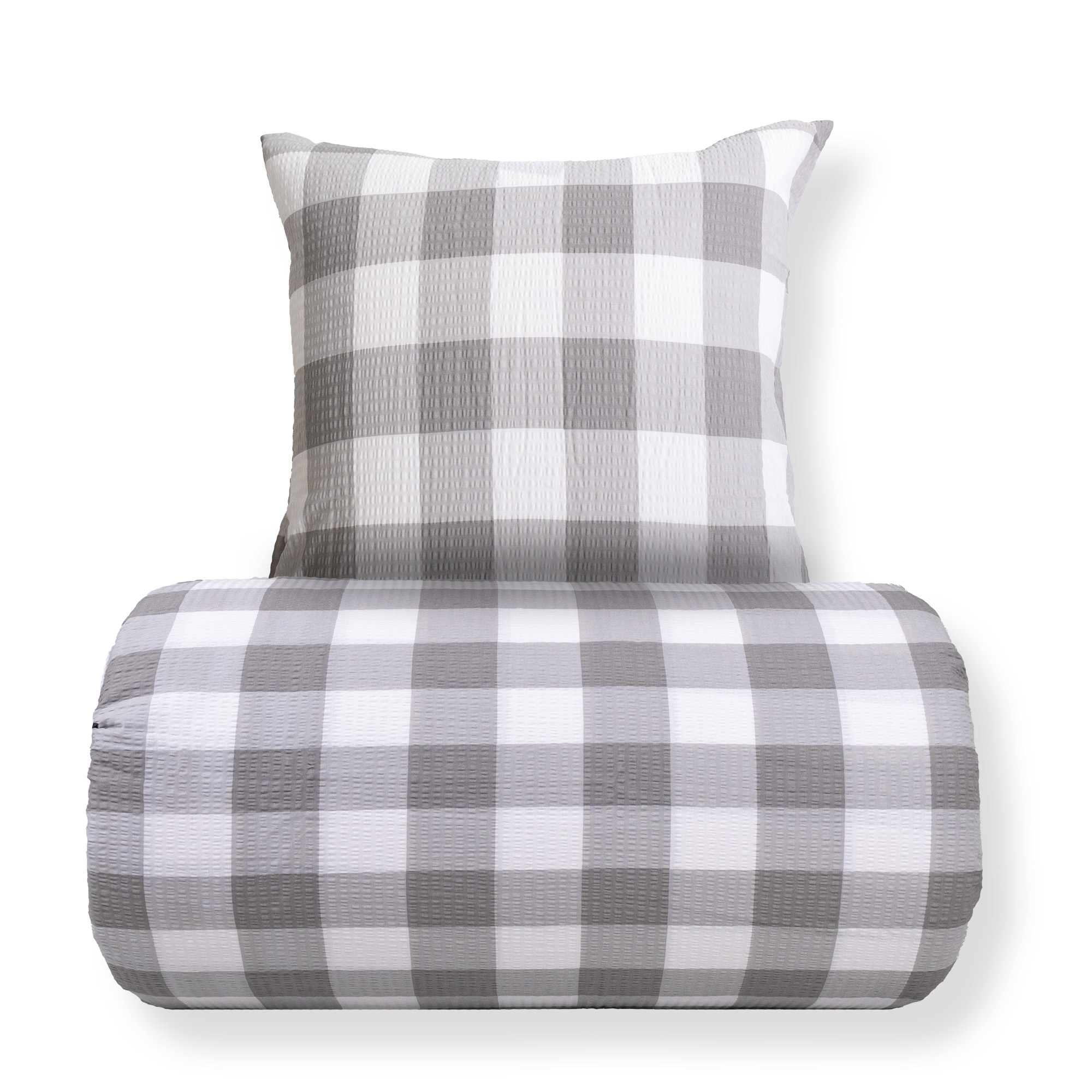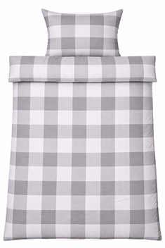 Duvet and pillowcases are closed with a zipper, making it easy to change bedding and keeping both duvet and pillow securely in place throughout the night. The checked design in white and gray gives a calm and timeless look that fits well in both modern and classic bedrooms.