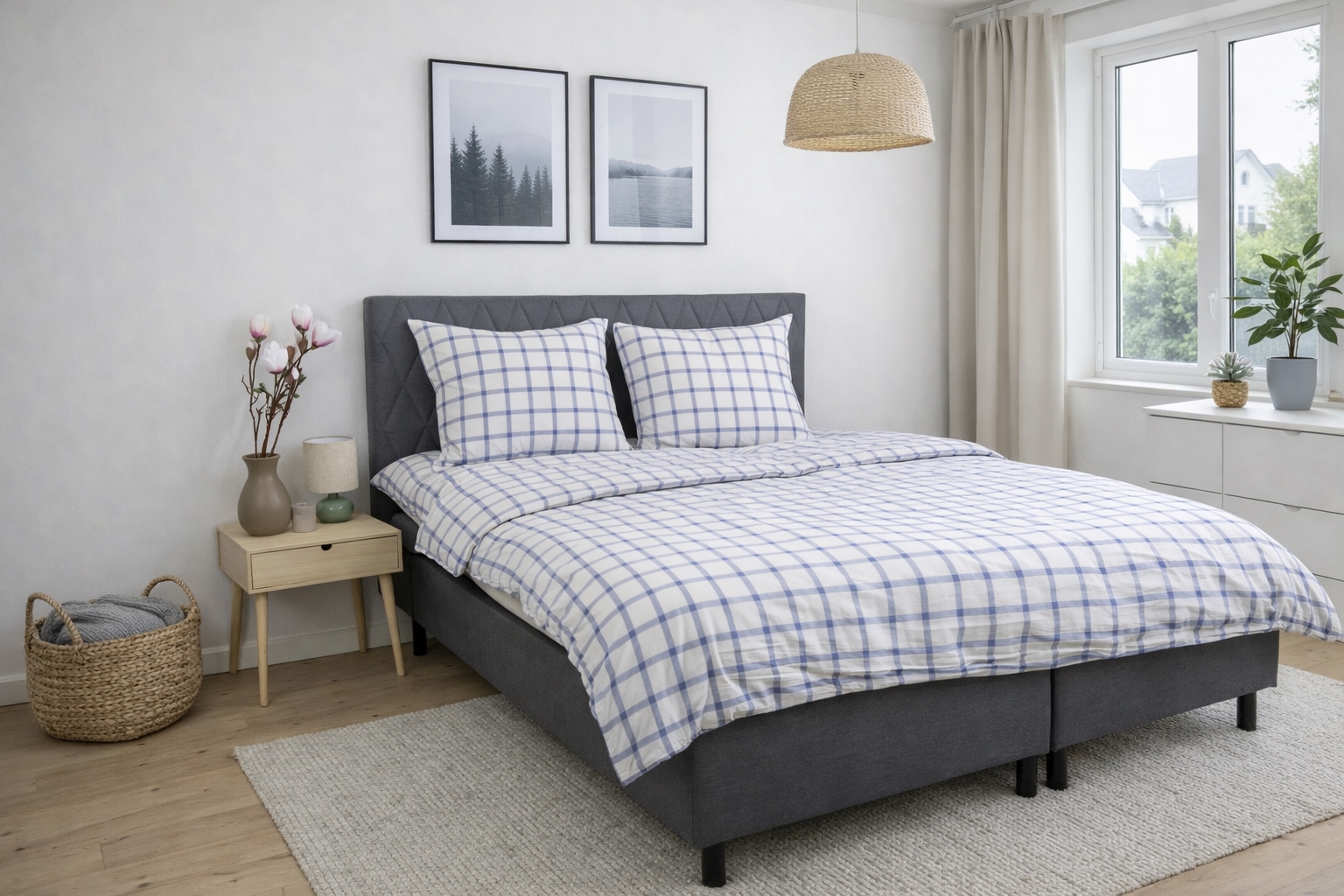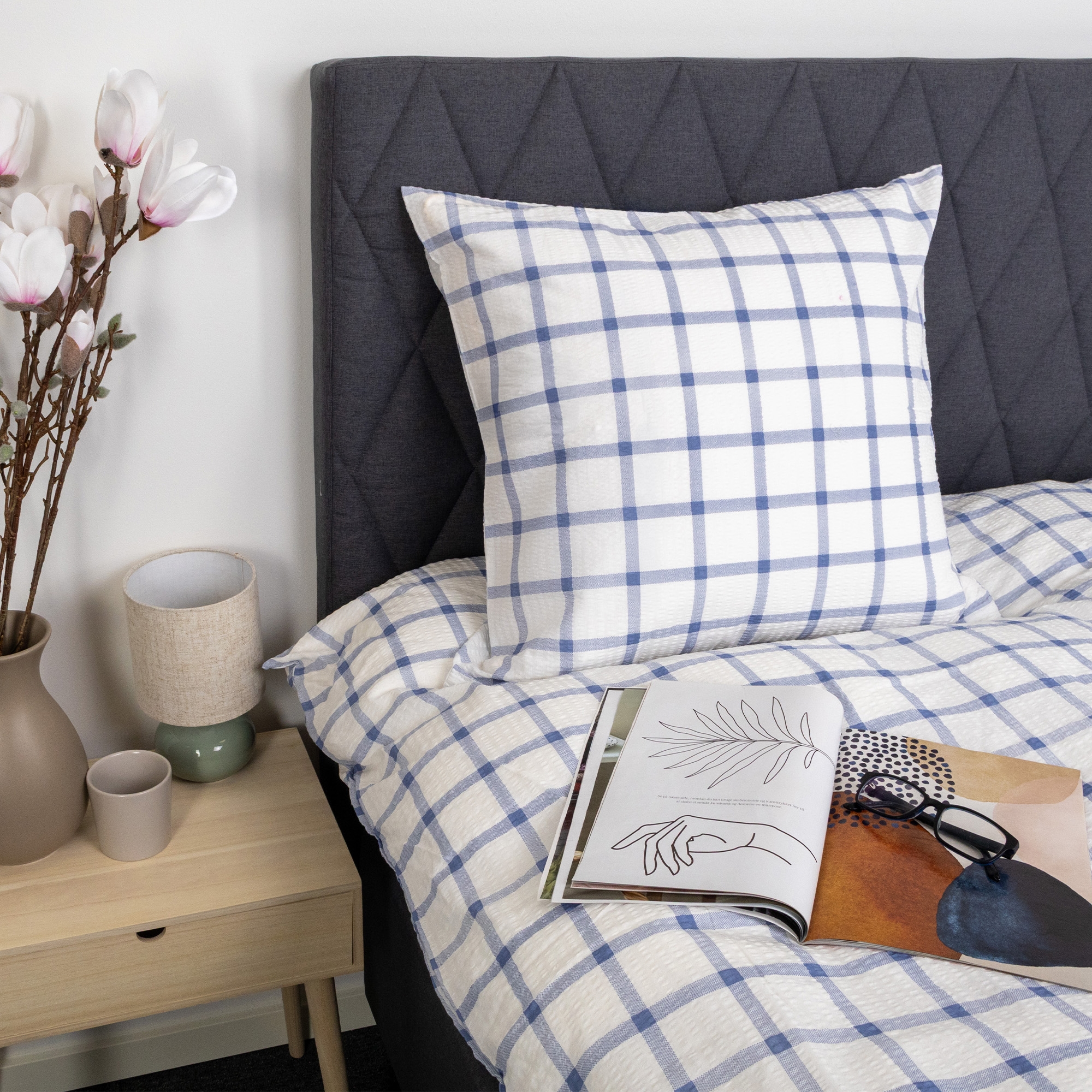 Duvet and pillow covers close with a zipper, making it easy to change bedding and keeping both duvet and pillow securely in place throughout the night. The checked design gives a calm and timeless expression that fits well in both modern and classic bedrooms.