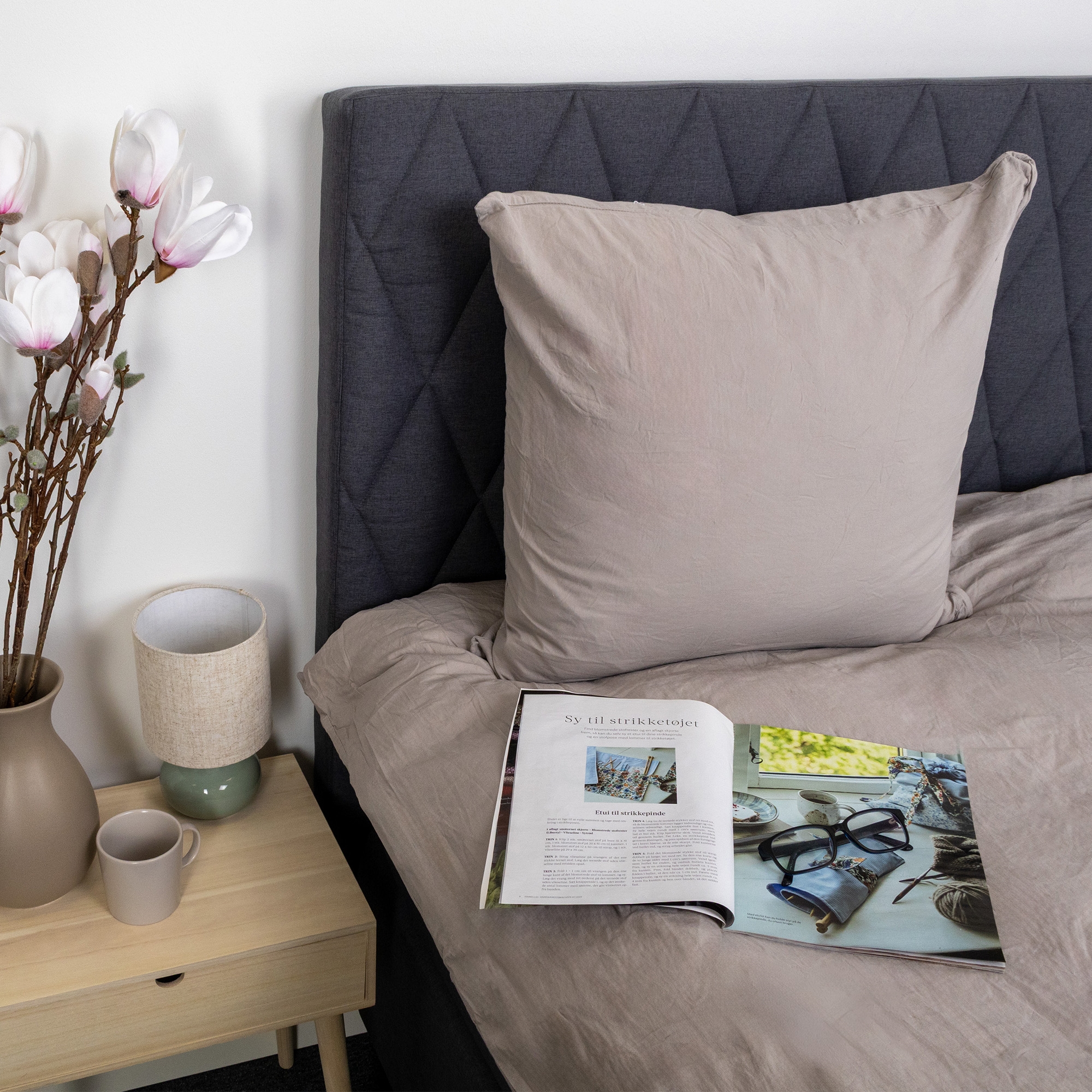 The duvet and pillow covers are closed with an internal hidden zipper, which provides a clean look and makes it easy to change bedding. The grey shade and the plain design make the set easy to combine with both light and dark elements in the bedroom.