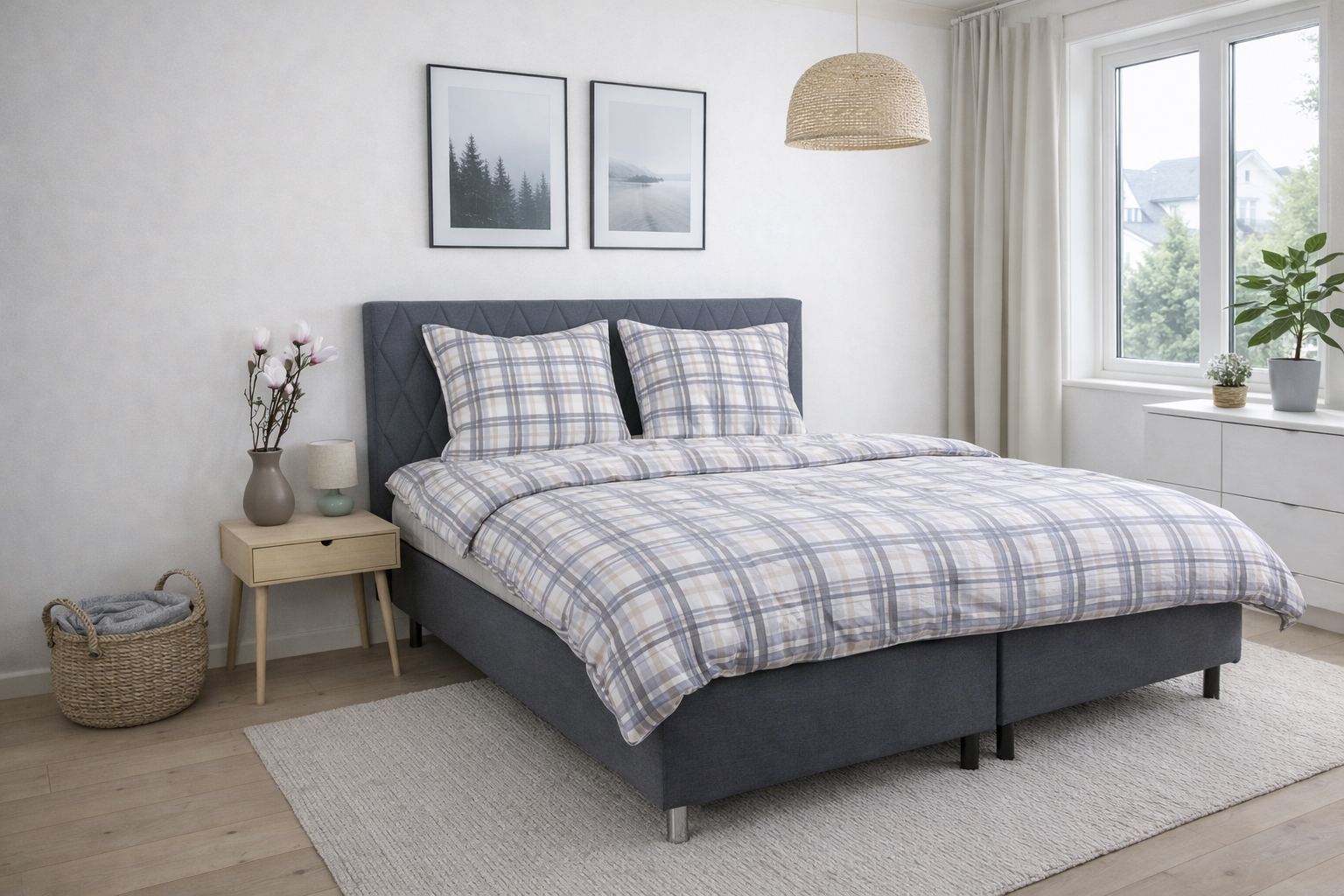 Home » Bedding » Single bedding » Single bedding 150x210 cm (Swedish size) Bedding 150x210 cm - Cotton flannel bedding - Beige with blue checks Save50% By Night 81,9940,99EURSave 41,- In stock Select size Select a variant Quantity Add to basket See more from: By Night Item number: 253-3 Read our bedding guide See our large selection of sheets See our wide selection of duvets 150x210 Do you have questions about the product? Warm and cozy bedding set that feels pleasant against the skinBreathable, soft material with high comfortIncredibly soft and fleecy surface Duvet cover: 150x210 cm Pillowcase: 1 pc. 50x60 cm Material: 100% cotton flannel Weave: 200TC (Thread count = number of threads per square inch) Color: Beige with blue checks Design: Large Check Brand: By Night Closure: Duvet and pillowcases with internal zipper Washing: 60°C Tumble drying: Yes Ironing: Yes Certification: STANDARD 100 by OEKO-TEX® (20182KO658). Your guarantee that the product is free from harmful chemicals. Cotton flannel bedding with checks - extra soft and warm Create a cozy and inviting atmosphere in the bedroom with this checked flannel bedding in beige with blue details. The soft cotton flannel provides a warm and pleasant comfort - perfect for cool nights. The bedding is made from 100% cotton flannel with a dense 200TC weave. Flannel is characterised by the cotton fibres being raised and brushed on the surface. This treatment creates the familiar, fleecy soft texture that makes flannel bedding extra comfortable to sleep with. The brushed surface traps heat closer to the body and gives a lovely warm feeling without the material losing its natural breathability. Cotton flannel is therefore an obvious choice if you often feel cold at night or want a warmer bedding for the autumn and winter months. At the same time, the material is durable and stays soft wash after wash. The checked design combines attractive blue checks with a light background, creating a calm and harmonious expression in the bedroom. A checked bedding that feels warm and looks elegant. The duvet and pillowcases close with an internal zipper, which ensures a neat and practical finish. The bedding is certified according to STANDARD 100 by OEKO-TEX, which guarantees that the product has been tested and is free from harmful chemicals. It can be washed at 60 degrees and tolerates both tumble drying and ironing. See all our flannel bedding here By Night By Night, which is produced by Borg Design, is characterised by Danish design - they give you comfortable products for your sleep in the highest quality. By Night produces bedding and sheets for the whole family and places great emphasis on current trends, so production always involves fashionable colours and designs. See the full range from By Night here Return to Single bedding 150x210 cm (Swedish size) Customers also bought Flannel sheet 160x200 cm - 100% cotton flannel bed sheet from Høie of Scandinavia In stock 68,4940,99EUR Add to basket Stretch fitted sheet 160x200 cm - White Jersey sheet - 100% Cotton - Fitted sheet for mattress In stock 54,4927,49EUR Add to basket Topper fitted sheet 90x200 cm - 100% soft cotton - Height 8 cm - White sheet for mattress topper by Nordstrand Home In stock 36,9913,99EUR Add to basket Poppy Bath Sheet - 100% Soft Cotton with High Absorbency - 100x150 cm - Black - Large Towel from Danish By Borg In stock 31,4919,49EUR Add to basket Poppy Bath Sheet - 100% Soft Cotton with High Absorbency - 100x150 cm - Red - Large Towel from Danish By Borg In stock 31,4919,49EUR Add to basket Poppy Bath Sheet - 100% Soft Cotton with High Absorbency - 100x150 cm - Dark Green - Large Towel from Danish By Borg In stock 31,4919,49EUR Add to basket Poppy Bath Sheet - 100% Soft Cotton with High Absorbency - 100x150 cm - Dark Gray - Large Towel from Danish By Borg In stock 31,4919,49EUR Add to basket "Bamboo" Bamboo guest towel - 40x60 cm - Dark blue - Soft luxury towels from Excellent - By Borg In stock 17,9912,49EUR Add to basket "Bamboo" Bamboo bath sheet - 100x150 cm - Dark blue - Luxurious soft towels from Excellent - By Borg In stock 68,4947,99EUR Add to basket "Bamboo" Bamboo guest towel - 40x60 cm - Sand - Soft luxury towels from Excellent - By Borg In stock 19,4912,49EUR Add to basket