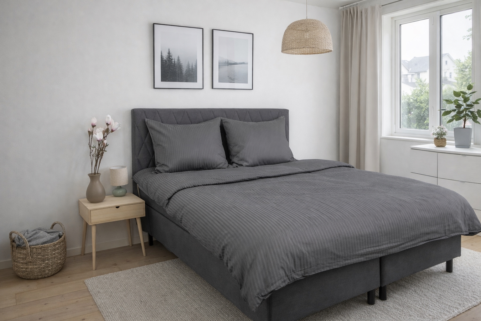 Home » Bedding » Single bedding » Single bedding 140x200 cm Bedding made from 100% Egyptian cotton - 140x200 cm - Grey bedding - Extra soft set from By Borg Save54% By Borg 149,9968,49EURSave 82,- In stock Select size Select a variant Quantity Add to basket See more from: By Borg Item number: 91-1 Read our bedding guide Explore our extensive collection of sheets Discover our wide range of 140x200 duvets Do you have questions about the product? 100% Egyptian cotton satinLuxury bedding in the finest qualityFinest and softest weave Duvet cover: 140x200 cm Pillowcase: 1 piece at 60x63 cm Material: 100% Egyptian cotton satin Weaving: Extra fine 400 TC satin weave (Thread count = number of threads per square inch) Colour: Grey Design: Jacquard woven stripes Brand: Excellent By Borg Closure: Duvet and pillowcase with zip Washing: 60° Tumble drying: Yes Ironing: Yes Certification: STANDARD 100 by OEKO-TEX® (11-47542) Egyptian cotton is one of the finest and most luxurious materials used for bedding. The quality of bedding made from Egyptian cotton is primarily due to the type of cotton grown in Egypt and the meticulous weaving process. Egyptian cotton primarily comes from the Gossypium barbadense plant, which is renowned for producing long and fine fibres. The long fibres contribute to the strength and smoothness of the bedding. Bedding made from 100% Egyptian cotton satin is often noted for its high thread count. Thread count refers to the number of threads per square inch. High thread count enhances durability and creates a smoother surface. Despite the tight weave, Egyptian cotton bedding is known for being breathable, helping to regulate body temperature. The bedding also boasts excellent moisture absorption, ensuring the bed remains dry and comfortable. Egyptian cotton bed linen is celebrated for its high quality, softness, sheen, and durability, making it a popular choice for those seeking luxurious bedding products. The bed set features a concealed zip closure for both duvet and pillowcase. Easily purchase matching pillowcases for your pillows here. Revitalise your bed and bedroom with elegant and charming bedding like this. Ensure optimal sleep comfort by adding a new, soft, high-quality sheet. Discover our extensive range of quality sheets here. Excellent By Borg presents a bed set crafted from 100% Egyptian cotton, jacquard woven in a classic and timeless design. This luxurious bed linen is not just a treat for the eyes, but also a delight for the body. Excellent By Borg focuses on comfort and sleep enhancement with their Danish-produced duvets, pillows, and bedding. They understand that a fulfilling daily life and high quality of life are linked to optimal sleep. Therefore, they have made it simple for you to find the right sleep solutions tailored to your needs. The products in this collection provide you with outstanding quality and rigorous certification. Return to Single bedding 140x200 cm Customers also bought Pillowcase 60x63 cm - 100% Egyptian cotton - Grey pillowcase - Extra soft pillowcase In stock 34,4913,99EUR Add to basket Bedding in 100% Egyptian cotton - 140x200 cm - Dark blue bedding - Extra soft set from By Borg In stock 149,9968,49EUR Add to basket Bedding in 100% Egyptian cotton - 140x200 cm - Light grey bedding - Extra soft bedding from By Borg In stock 149,9995,49EUR Add to basket Bedding made from 100% Egyptian cotton - 140x220 cm - Grey bedding - Extra soft set from By Borg In stock 163,4981,99EUR Add to basket Bedding 100% Egyptian cotton - 140x200 cm - Green bedding - Extra soft bedding from By Borg In stock 149,9968,49EUR Add to basket Muscovy down duvet 100% down - 140x200 cm - Hypoallergenic - All-season duvet - Zen Sleep duvet In stock 312,99108,99EUR Add to basket Bedding 140x200 cm - Egyptian cotton - white jacquard woven stripes In stock 149,9968,49EUR Add to basket Bedding in 100% Egyptian cotton - 140x220 cm - Light grey bedding - Extra soft bedding from By Borg In stock 163,4995,49EUR Add to basket Orchid Egyptian cotton bath towel - 70x140cm - Anthracite - Luxury towels by By Borg In stock 54,4927,49EUR Add to basket Orchid Egyptian cotton towel - 50x100cm - Anthracite - Luxury towels by By Borg In stock 31,4913,99EUR Add to basket