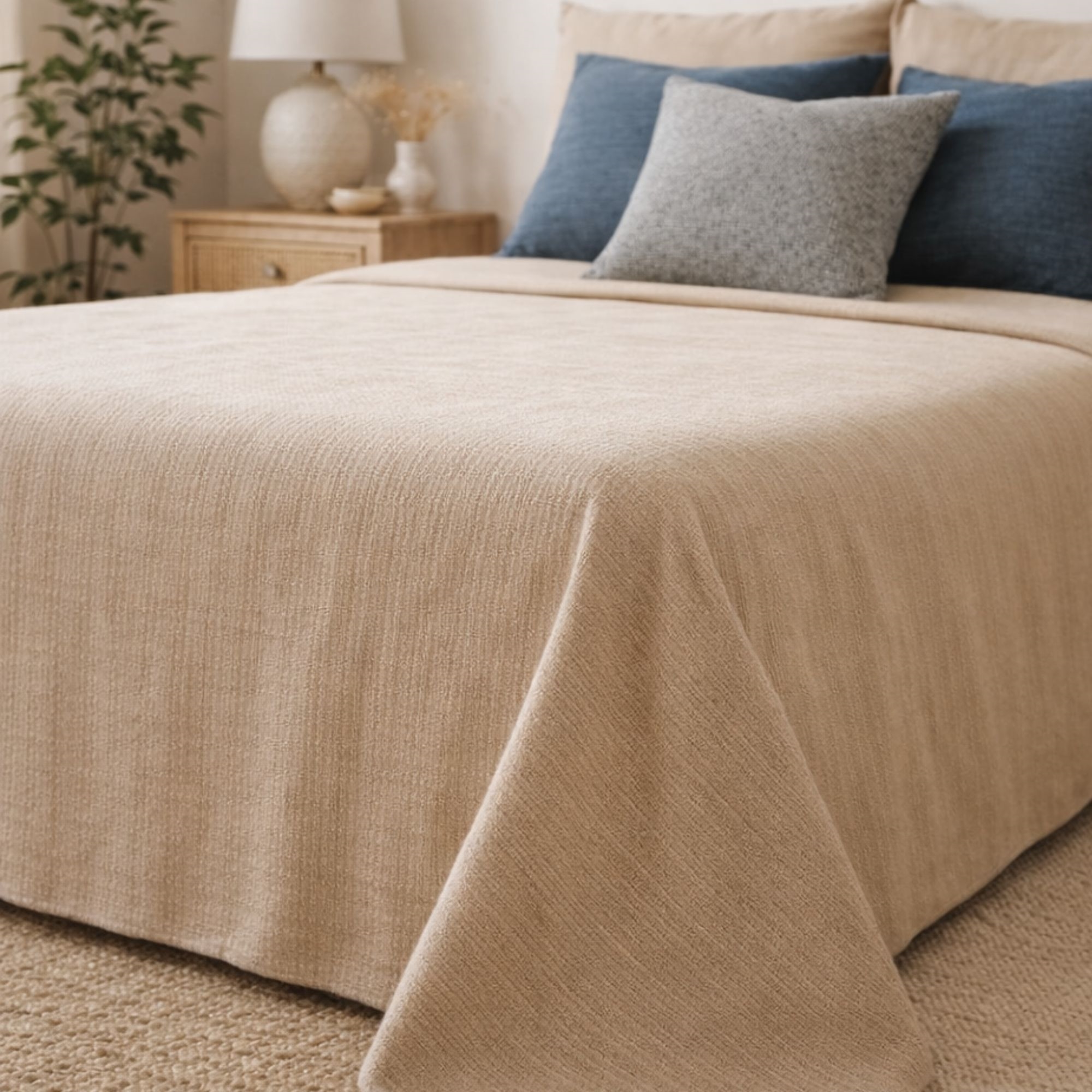 Home » Interior Design » Textiles » Bedspreads Bedspread - 140x220 cm - Beige Bedspread for Single Bed - Nordstrand Home Save41% Nordstrand Home 34,4920,49EURSave 14,- In stock Select size Select a variant Quantity Add to basket See more from: Nordstrand Home Item number: ST4001 Explore our range of bolster cushions Discover our selection of dressing gowns for the whole family Browse our extensive selection of home accessories Do you have questions about the product? Solid Colour Bedspread100% Recycled FibresOEKO-TEX® Certified Size: 140x220 cm Type: Fits Single Bed Colour: Sand/Beige Design: Nordstrand Home Material: 70% Cotton 30% Polyester Washing: 40° Certification: Global Recycled Standard (CU 1087862) Certification: STANDARD 100 by OEKO-TEX® Solid Colour Bedspread from Nordstrand Home Does your bedroom need a refresh? It's quickly and easily achieved with a beautiful bedspread - and perhaps matching headboard and decorative cushions. Using a bedspread instantly makes the bedroom appear tidy and stylish. This bedspread is crafted with a variation of colours, giving the fabric a lovely texture. The same weave is present in our matching headboard and decorative cushions from the same series. Feel free to mix and match the bedspread with a variety of pillow colours and sizes, adding depth and contrast to your room. These bedspreads, made from recycled cotton and polyester fibres, offer an eco-friendly choice for those who wish to care for the environment. The bedspread in size 140x240 cm is recommended for single beds, ensuring it drapes beautifully over the edges. Explore our full range of bedspreads with matching cushions With Nordstrand Home, you're assured of home textiles in Danish design and Nordic style. Nordstrand Home emphasises the sensation of well-being in a beautiful yet relaxing environment. With Nordstrand Home, you don't need to compromise; you will always find products in classic and stylish colours. Nordstrand Home – So you feel truly at home! Return to Bedspreads Customers also bought Christmas Elf 50 cm - Christmas reindeer boy in lovely soft felt - Unique Christmas decoration In stock 17,9910,99EUR Add to basket Christmas decoration - Standing reindeer girl in felt - 50 cm - Unique Christmas decoration In stock 17,9910,99EUR Add to basket Christmas elf - 2 pcs. - 45 cm - Set of 2 sitting Christmas elf reindeer - Christmas decorations for the home In stock 34,4920,49EUR Add to basket White Crocs shoes - Size 36/37 - Unisex - Lightweight shoes for leisure use In stock 20,496,99EUR Add to basket Summer duvet - Extra light - 140x200 cm - Fibre duvet - Zen Sleep In stock 34,4912,49EUR Add to basket Fiber duvet - Allergy-friendly all-season duvet - 140x200 cm - Moisture-absorbing duvet with hollow fibers - 2nd quality In stock 95,4923,49EUR Add to basket Mickey Mouse bedding - 100% cotton - Junior bedding 100x140 cm - Blue and white striped In stock 47,9920,49EUR Add to basket Minnie Mouse bedding - 100% cotton - Junior bedding 100x140 cm - Polka-dot reverse In stock 47,9920,49EUR Add to basket Tractor Towel - 70x140 cm - 100% Cotton - Soft Bath Towel with a Blue Tractor In stock 27,4917,99EUR Add to basket Ventilating Muscovy down duvet - 140x200cm - All-season duvet with class 1 muscovy down - SLEEP TECH By Borg Air flow duvet In stock 448,99163,49EUR Add to basket