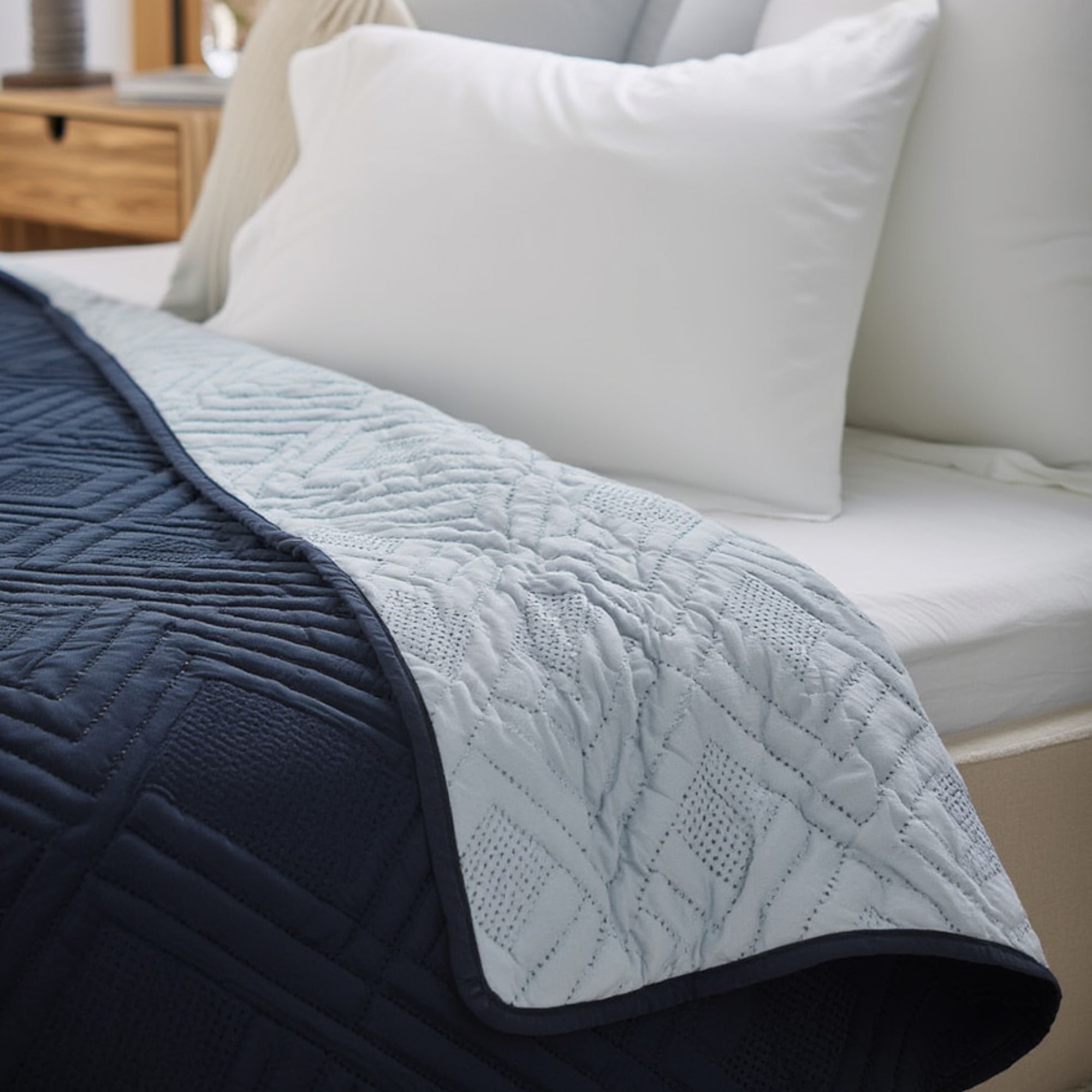Home » Interior Design » Textiles » Bedspreads Bedspread - 140X240 cm - Reversible dark blue and light blue - Blanket for a single bed Save44% Borg Living 61,4934,49EURSave 27,- In stock Select size Select a variant Quantity Add to basket See more from: Borg Living Item number: ST3001 Explore our range of bolster cushions Discover our selection of dressing gowns for the whole family Browse our extensive selection of home accessories Do you have questions about the product? Reversible design in two stylish coloursMade from light and smooth polyester materialCertified with STANDARD 100 by OEKO-TEX® Size: 140x240 cm Type: Fits single bed Colour: Reversible - Dark blue and light blue Design: Borg Living Cover: Polyester Wash: 30°C Certification: STANDARD 100 by OEKO-TEX® (19. HCN. 74736 HOHENSTEIN HTTI) Bedspread in reversible design This sophisticated bedspread from Borg Living offers a straightforward way to refresh your bedroom. Thanks to its reversible design, you can update your room's appearance effortlessly. This bedspread is both functional and fashionable. Polyester Polyester is renowned for its durability and hassle-free maintenance. It is a lightweight material that is easy to clean, making it the perfect choice for bedspreads as it can endure everyday use and still appear brand new. Polyester is also recognised for being hypoallergenic, making it an excellent option for individuals with allergies or asthma. Reversible design Another benefit of this bedspread is its reversible design. This gives you the ability to easily alter your bedroom's appearance without the need to purchase a new bedspread. Simply flip the blanket over to reveal a different colour, offering your room a completely new look. This is a clever method to keep your bedroom fresh and modern. Consider browsing our Textiles category as well. The Danish brand Borg Living crafts exclusive ranges of duvets, pillows, and home textiles for your home. Founded in 2013, the brand is renowned for its innovative quality and design. Borg Living's fantastic products provide a comfortable night's sleep while decorating your home with modern, elegant accessories. Return to Bedspreads Customers also bought Decorative cushion - 45x60 cm - Double-sided - Dark blue and light blue - Sofa cushion In stock 40,9920,49EUR Add to basket Decorative cushion - 45x45 cm - Double-sided - Dark blue and light blue - Sofa cushion In stock 34,4913,99EUR Add to basket Headboard pillow - 80x80 cm - Double-sided - Dark blue and light blue - Large decorative cushion for the bed Few in stock 68,4934,49EUR Add to basket Bedspread - 260x240 cm - Reversible dark blue and light blue - Suitable for double bed In stock 95,4947,99EUR Add to basket Bedspread - 140x240 cm - Reversible Dark grey and light grey - Cover for single bed In stock 61,4934,49EUR Add to basket Bedspread - 140x240 cm - Reversible sand-coloured and white - Blanket for single bed In stock 61,4934,49EUR Add to basket Sonic bedding 140x200 cm - Reversible bedding set with Sonic The Hedgehog and friends - 100% soft cotton bed linen In stock 47,9927,49EUR Add to basket Ninjago bedding - 100% cotton - Children's bedding 140x200 cm - LEGO Ninjago and Master Wu In stock 47,9934,49EUR Add to basket Bedding 140x220 cm - 100% cotton - Blue with dark blue checks In stock 68,4927,49EUR Add to basket Sonic lunch box - Children's lunch box with 3 compartments In stock 27,4917,99EUR Add to basket