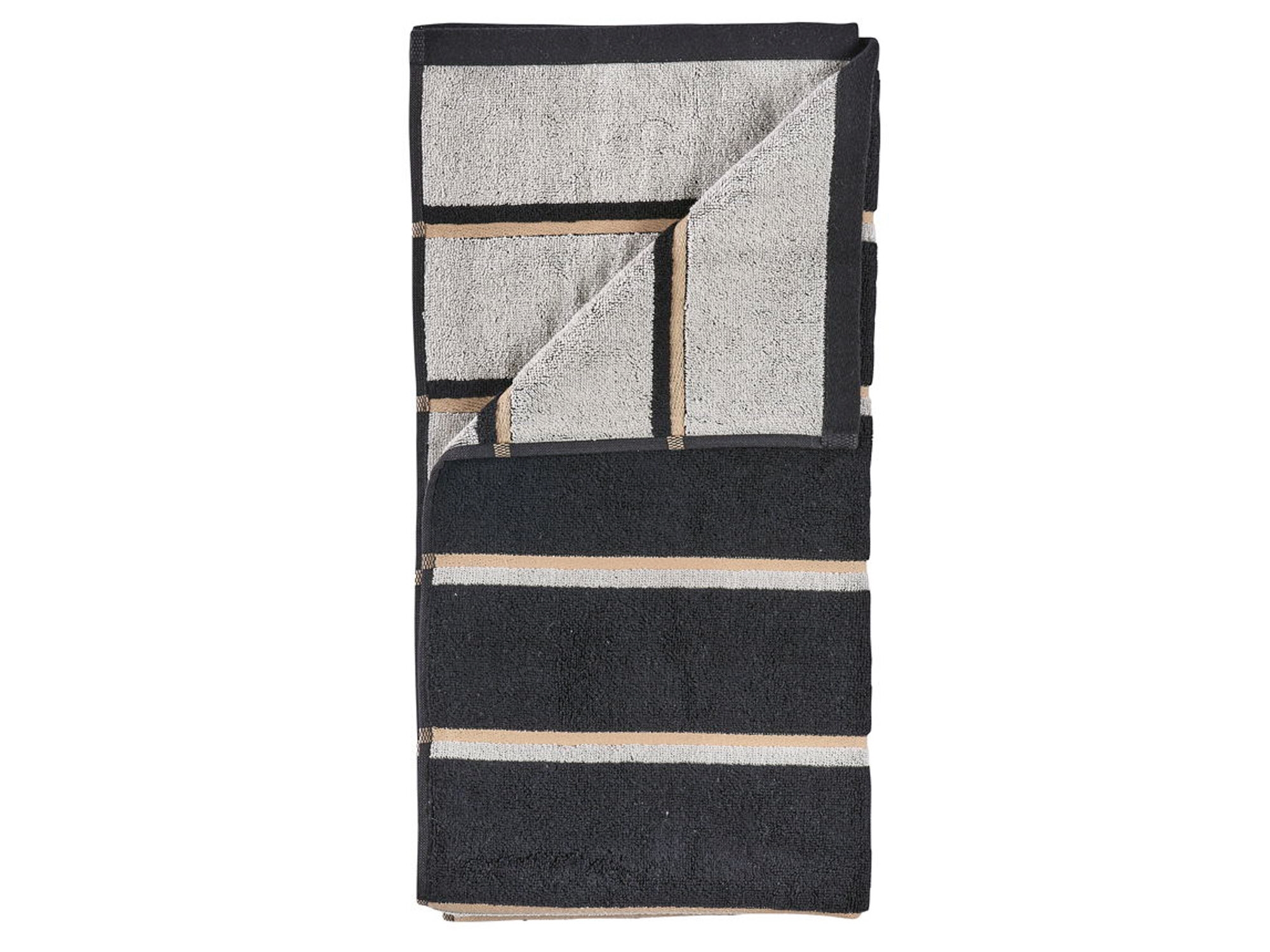 Home » Oversættelse færdig Black Bath Towel - 70x140 cm - Zone Denmark Zone Great price:40,99EUR In stock Quantity Add to basket See more from: Zone Item number: 37622-4 See our wide selection of bath mats for the floor See our selection of towel packs See our wide selection of bathrobes for the whole family Do you have questions about the product? Type: Bath towelSize: 70x140 cmColor: BlackMaterial: 100% cotton/600 gWash: 60°Tumble dry: Yes Certification: STANDARD 100 by OEKO-TEX® (2668CIT CITEVE) Sauna is the name – and the stripes speak for themselves. The series is inspired by the crisp lines of a classic wood-clad sauna, where the design plays elegantly with perspective and color balance. Each side of the towel highlights its own dominant color - a nice detail that gives you two different looks in one and the same towelThe retro-inspired stripes add a graphic, urban touch, and with a soft, heavy quality in yarn-dyed 600 g cotton, the towel feels just as luxurious as it looks.Choose between 50 x 100 and 70 x 140 cm – and let Sauna put its graphic, colorful mark on your bathroom. Return to Oversættelse færdig