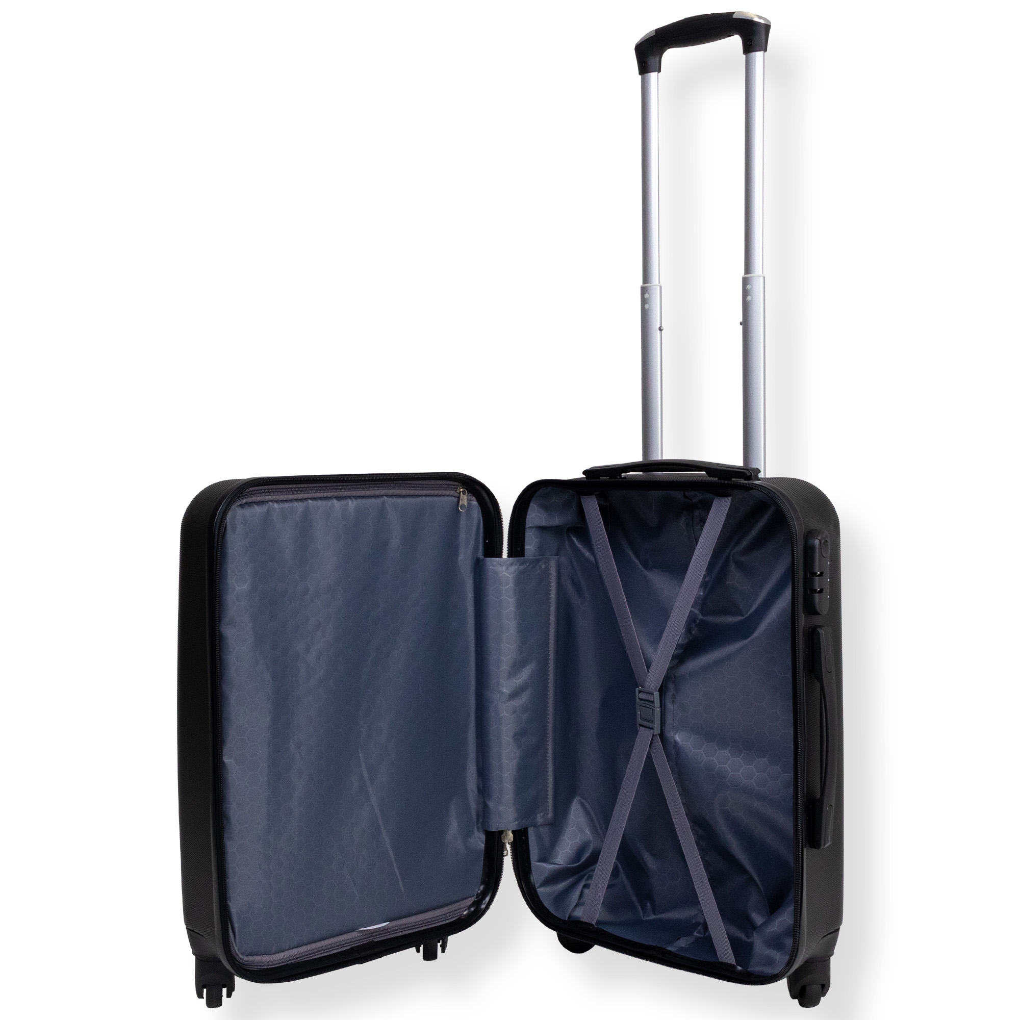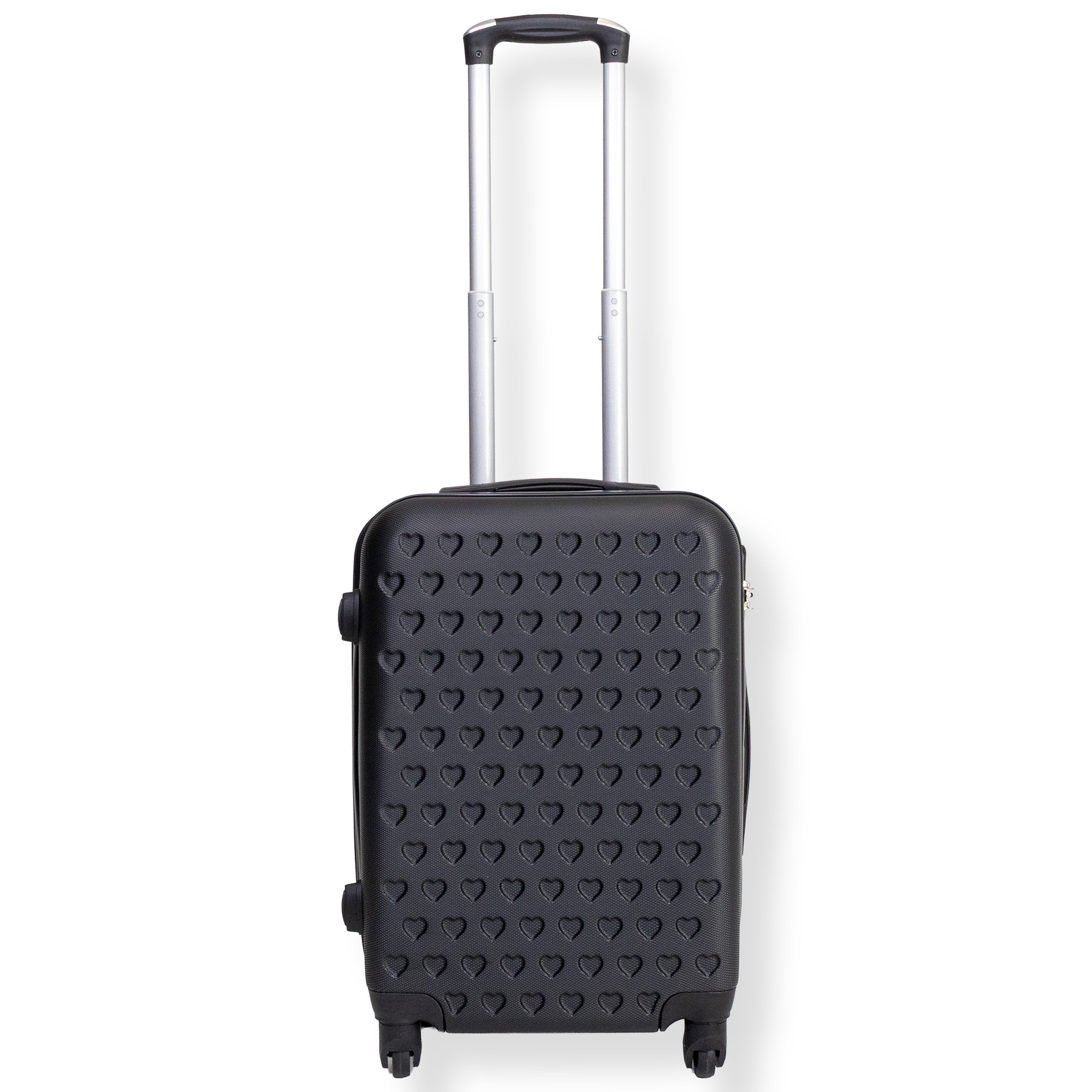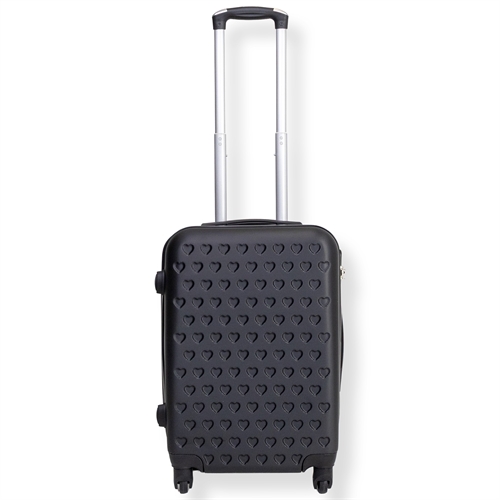 Home » Oversættelse færdig Black carry-on suitcase - Hardcase suitcase with hearts - Shockproof polypropylene - Travel suitcase Save43% Borg Living 95,4954,49EURSave 41,- In stock Quantity Add to basket See more from: Borg Living Item number: PR065-2 See our selection of large towels See our selection of toiletry bags and beauty boxes See our selection of bags and backpacks Do you have questions about the product? Practical compartment layoutDurable ABS plastic360° swivel wheels Size: Carry-on suitcase - small suitcase Internal dimensions: H: 51 cm / W: 36 cm / D: 20 cm Weight: 2.4 kg Volume: 37 L Material: Hardcase - lightweight ABS plastic Color: Black Design: Hearts Wheels: 4x 360° swivel wheels Lock: Yes Telescopic handle: 2 positions Carrying handles: 2 pcs. Compartmentalization: 2 compartments - zippered and adjustable cross strap Carry-on suitcase in durable ABS plastic This black carry-on suitcase with hearts is the perfect travel companion for both short and longer trips. Travel easily and safely with a carry-on made from durable ABS plastic. The material provides a strong and durable surface that is resistant to the hard bumps and pressure that can occur on, for example, a luggage conveyor belt. The durable material therefore protects your belongings throughout the trip - while the suitcase remains lightweight and easy to handle. The suitcase has a telescopic handle with two adjustable positions so you can easily adapt the height to your needs. In addition, you get both a handle on the top and one on the side, making it easy to lift the suitcase into overhead bins, trunks, or onto conveyor belts. The four smooth 360° swivel wheels provide maximum mobility and make it easy to roll the suitcase in any direction without effort. On the side of the suitcase there are 4 small "feet" so the suitcase stands securely when you set it down - this prevents a wet and dirty suitcase. Secure your personal belongings To secure your personal belongings, the suitcase has an integrated lock and a strong zipper that keeps your items protected throughout the trip. Inside, the suitcase is divided into two practical compartments, making it easy to organize your luggage. One compartment has adjustable cross straps to keep clothing in place, while the other compartment is equipped with a zipper closure, which is ideal for smaller items or objects that need extra protection. See our large selection of towels here Return to Oversættelse færdig Customers also bought Large suitcase - Shell orange - Hard-shell suitcase - Size Large - Exclusive travel suitcase In stock 190,49122,49EUR Add to basket Pink carry-on suitcase - Hardcase suitcase with hearts - Impact-resistant polypropylene - Travel suitcase In stock 95,4954,49EUR Add to basket Cabin suitcase - Hard-shell lightweight suitcase - Size small - Gold clam In stock 95,4968,49EUR Add to basket
