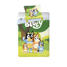 Home » Bedding » Children's bedding » Junior bedding 100x140 cm Bluey bedding 100x140 cm - Junior bedding set with Bluey and Bingo at the beach - Reversible duvet cover - 100% cotton bed linen Save57% Licens 47,9920,49EURSave 28,- In stock Quantity Add to basket See more from: Licens Item number: 9601-8 Read our bedding guide See our large selection of fitted sheets See our large selection of duvets 100x140 Do you have questions about the product? Soft & breathable100% soft cottonOEKO-TEX® certified Duvet cover: 100x140 cm - junior bedding set Pillowcase: 40x45 cm Material: 100% soft cotton Color: Blue and beige Motif: Bluey, Bingo and friend Muffin Design: Reversible - Front with motif of Bluey, Bingo and Muffin at the beach, back with all-over print of Bluey and Bingo Closure: Duvet cover with snap buttons and pillowcase with overlap Wash: 60° Tumble dry: Yes Iron safe: Yes Certification: STANDARD 100 by OEKO-TEX® (17.HPK.23879). Your guarantee that the product is free from harmful chemicals. Soft junior bedding in 100% cotton, with a super nice and recognizable design of Bluey, Bingo and friend Muffin at the beach. Made with light and breathable cotton fibers, this bedding set gives a feeling of softness that allows the duvet to naturally fall around your child. The balance of natural comfort from the soft material and the cozy Bluey design makes this set a sure favorite for your child. Make bedtime extra cozy with this Bluey junior bedding. The bedding set is made of 100% soft cotton, ensuring good comfort throughout the night. The material is breathable, durable, and keeps colors vibrant—even after many washes. The bedding is perfect for children who love the entire Bluey universe. The bedding features a reversible design with a super cozy motif of Bluey, Bingo, and Muffin eating ice cream at the beach. On the reverse side, there is an all-over print of small motifs of Bluey and little sister Bingo. The bedding set is OEKO-TEX® certified and tested free from harmful substances, so your child can sleep safely with it every night. The bedding is suitable for daily use as it is easy to wash and withstands 60°. Without the need for ironing, it retains its softness and color even after several washes. See the large selection of items with Bluey motifs right here For the child, the bed should be a safe place and all elements should together create soft and lovely surroundings for the child to find peace in. Therefore, feel free to use the child's interests to create a safe sleeping environment. With us, you can find a large selection of accessories for the bed and children's room, ranging from fitted sheets to duvets, pillows, bedding and much more, and plenty of products with all the children's favorites on. All elements that can help create the right sleeping environment and room for your child. Here you can find lovely and soft quality fitted sheets Return to Junior bedding 100x140 cm Customers also bought Bluey bedding 100x140 cm - Junior bedding set with Bluey and Bingo - Reversible duvet cover - 100% cotton bed linen In stock 47,9920,49EUR Add to basket Junior weighted blanket - 100x140 cm - 2 kg junior weighted duvet with glass beads - Zen Sleep junior duvet In stock 122,4940,99EUR Add to basket Toy Story junior bedding 100x140 cm - Bedding set with Toy Story - 2 in 1 design - 100% cotton In stock 47,9927,49EUR Add to basket Junior bedding 100x140 cm - Blue bedding set with cars and planes - 100% soft cotton bed linen In stock 27,4917,99EUR Add to basket Junior pillow with down fibre - 40x45 cm - Zen Sleep - Children's pillow In stock 31,4913,99EUR Add to basket Junior duvet - 100x140 cm - All-season duvet - Warm & light fibre duvet - Zen Sleep junior duvet In stock 47,9920,49EUR Add to basket Bedding 140x200 cm - Cotton flannel bedding - Green Melange In stock 68,4934,49EUR Add to basket Junior bedding set 100x140 cm - Reversible bedding with machines - 100% cotton bed linen In stock 47,9920,49EUR Add to basket Bluey bedding 100x140 cm - Junior bedding set with Bluey and mom Chili - Reversible duvet cover - 100% cotton bed linen In stock 47,9920,49EUR Add to basket Bluey bedding - 100% Soft cotton - 140x200 cm - Duvet cover with 2-in-1 design - 100% cotton bedding set In stock 54,4927,49EUR Add to basket You might also be interested in: Junior bedding 100x140 cm - Soft white bedding set in 100% Egyptian cotton satin - Turiform bed linenHigh quality Extra fine, soft & breathable Jacquard woven Guideline sales price : 61,22 Save : 13,23 68,49 EUR47,99 EUR (incl. VAT) Junior mattress protector - 70x140 cm - Boiled Cotton - Borg LivingBreathable and hypoallergenic Soft cotton OEKO-TEX® certified 47,99 EUR27,49 EUR (incl. VAT)