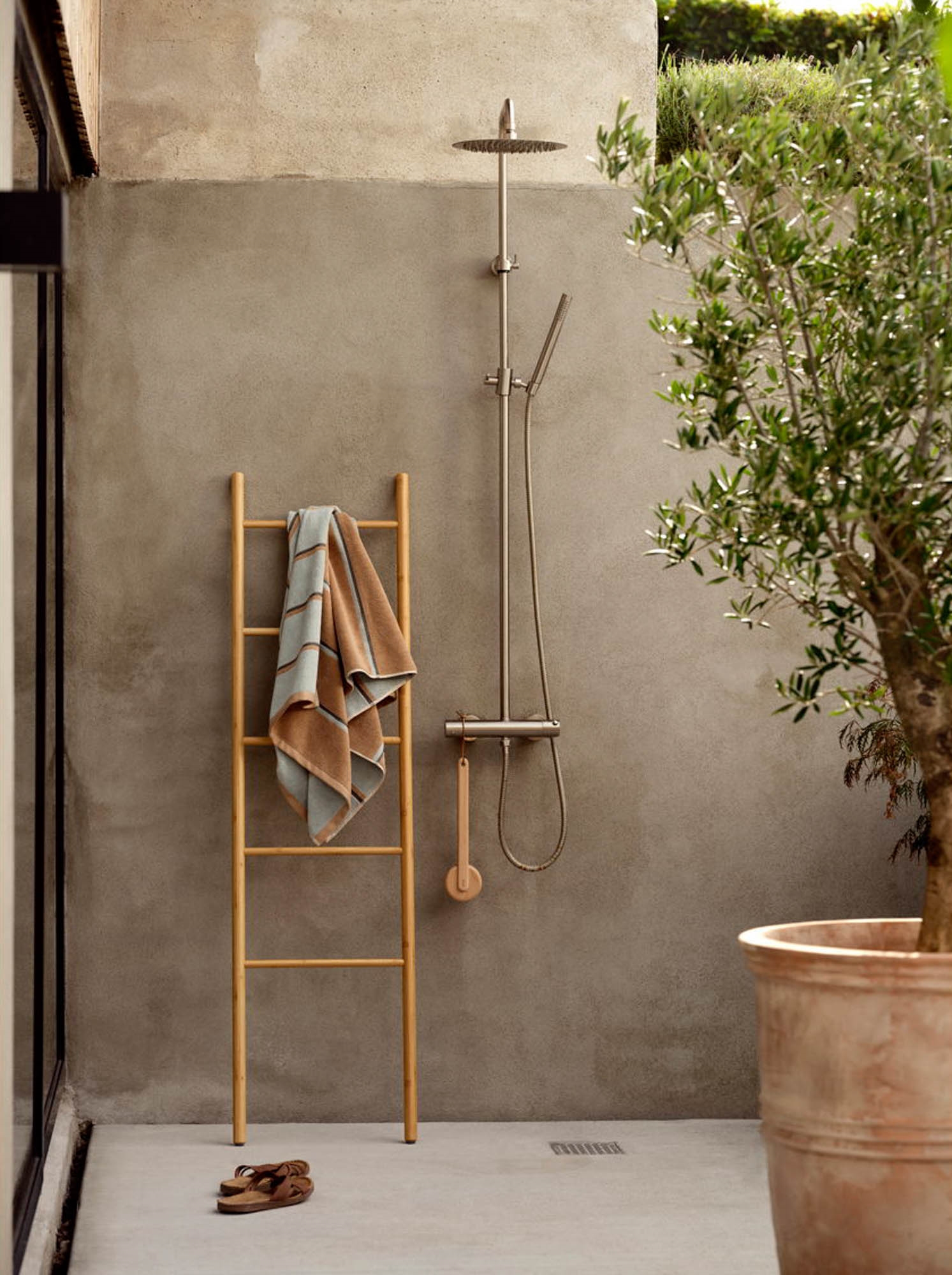Home » Oversættelse færdig Brown Bath Towel - 70x140 cm - Zone Denmark Zone Great price:40,99EUR In stock Quantity Add to basket See more from: Zone Item number: 37616-4 See our wide selection of bath mats for the floor See our selection of towel sets See our wide selection of bathrobes for the whole family Do you have questions about the product? Type: Bath towelSize: 70x140 cmColour: BrownMaterial: 100% cotton/600 gWash: 60°Tumble drying: Yes Certification: STANDARD 100 by OEKO-TEX® (2668CIT CITEVE) Sauna is the name – and the stripes speak for themselves. The series is inspired by the strict lines of a classic wood-clad sauna, where the design plays elegantly with perspective and color balance. Each side of the towel highlights its own dominant color - a nice detail that gives you two different looks in one and the same towel.The retro-inspired stripes add a graphic, urban touch, and with a soft, substantial quality in yarn-dyed 600-gram cotton, the towel feels just as lovely as it looks.Choose between 50 x 100 and 70 x 140 cm – and let Sauna give your bathroom its graphic, colorful touch. Return to Oversættelse færdig