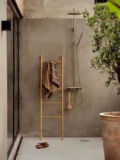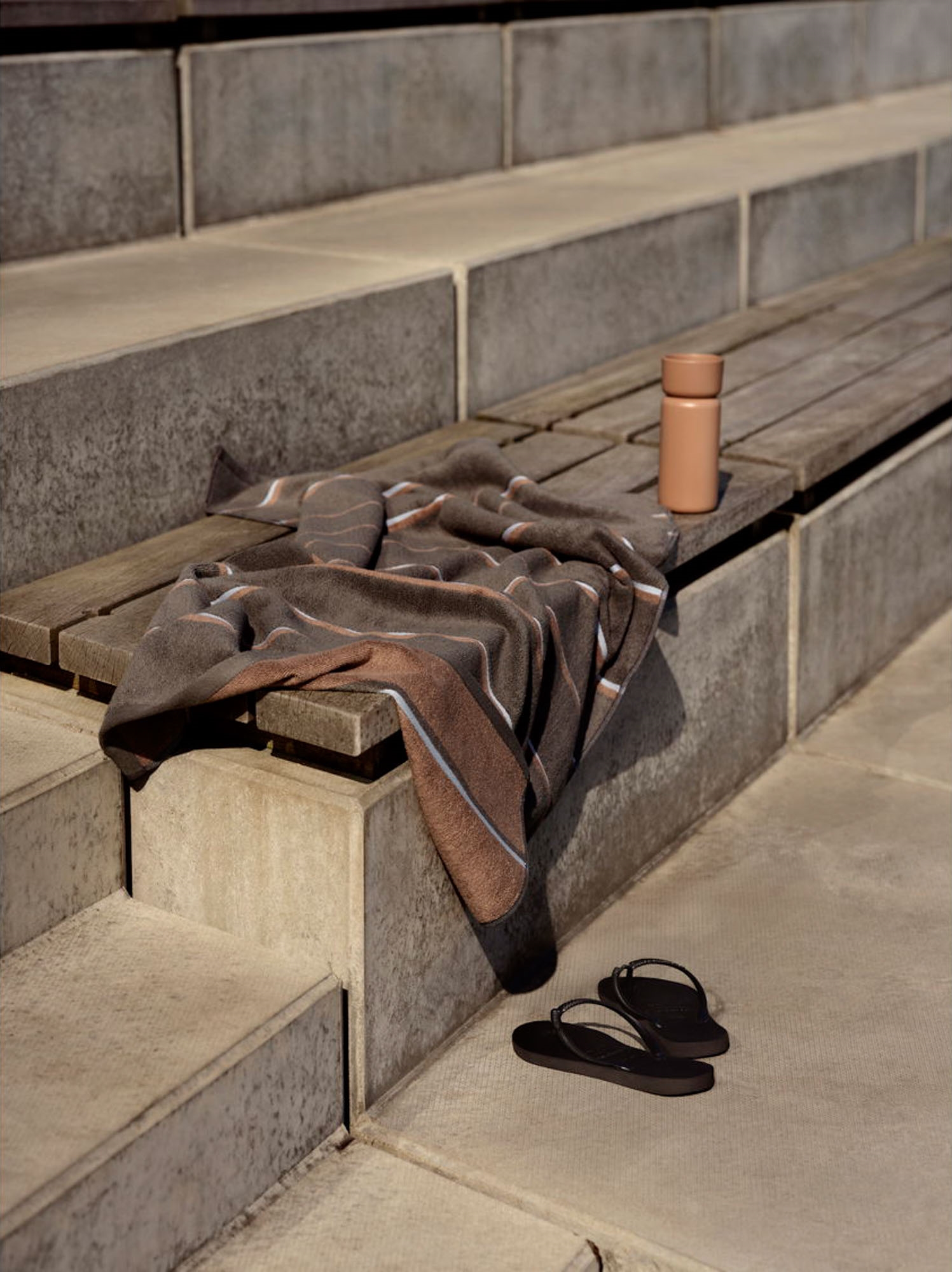 Home » Oversættelse færdig Brown Bath Towel - 70x140 cm - Zone Denmark - Sauna Zone Great price:40,99EUR In stock Quantity Add to basket See more from: Zone Item number: 37614-4 See our large selection of bath mats for the floor See our selection of towel packs See our large selection of bathrobes for the whole family Do you have questions about the product? Size: 70x140 cm Type: Bath towel Weight: 600 g/m2 Quality: 100% cotton Color: Brown Brand: Zone Denmark Series: Sauna Hanging loop: Yes, top Wash: 60°C Tumble dry: Yes Certification: STANDARD 100 by OEKO-TEX® (2668CIT CITEVE). Your guarantee that the product is free from harmful chemicals. Sauna is the name – and the stripes speak for themselves. The series is inspired by the crisp lines of a classic wood-clad sauna, where the design plays elegantly with perspective and colour balance. Each side of the towel highlights its own dominant colour – a nice detail that gives you two different looks in one and the same towel. The retro-inspired stripes add a graphic, urban touch, and with a soft, heavy yarn-dyed 600 gram cotton quality, the towel feels just as lovely as it looks. Choose between 50 x 100 and 70 x 140 cm – and let Sauna put its graphic, colourful mark on your bathroom. Return to Oversættelse færdig