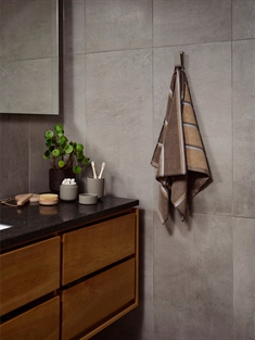 Home » Oversættelse færdig Brown Towel - 50x100 cm - Zone Denmark - Sauna Zone Great price:20,49EUR In stock Quantity Add to basket See more from: Zone Item number: 37614-3 See our large selection of bath mats for the floor See our selection of towel packs See our large selection of bathrobes for the whole family Do you have questions about the product? Size: 50x100 cm Type: Towel Weight: 600 g/m2 Quality: 100% cotton Color: Brown Brand: Zone Denmark Series: Sauna Hanging loop: Yes, top Wash: 60°C Tumble dry: Yes Certification: STANDARD 100 by OEKO-TEX® (2668CIT CITEVE). Your guarantee that the product is free from harmful chemicals. Sauna is the name – and the stripes speak for themselves. The series is inspired by the strict lines of a classic wood-clad sauna, where the design plays elegantly with perspective and color balance. Each side of the towel highlights its own dominant color - a nice detail that gives you two different looks in one and the same towel.The retro-inspired stripes add a graphic, urban touch, and with a soft, heavy quality in yarn-dyed 600 g cotton, the towel feels just as luxurious as it looks.Choose between 50 x 100 and 70 x 140 cm – and let Sauna put its graphic, colorful stamp on your bathroom. Return to Oversættelse færdig