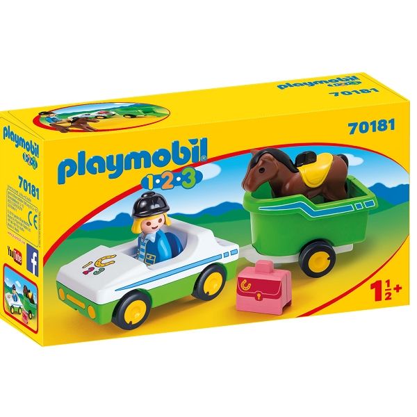 Home » Toy » Playmobil » All PLAYMOBIL products Car with horse trailer - PL70181 - PLAYMOBIL 1.2.3 Playmobil 123 Great price:27,49EUR Few in stock Quantity Add to basket See more from: Playmobil 123 Item number: LEGPL70181 Do you have questions about the product? The rider would like to drive to the next tournament with his horse They have already trained for several weeks. Now the day has finally come. Carefully place the horse into the trailer, and close the tailgate. The rider happily gets into the car and drives off. It will be an exciting day. The playset consists of a car with horse trailer, a PLAYMOBIL-1.2.3 figure, a horse and a suitcase. x Return to All PLAYMOBIL products