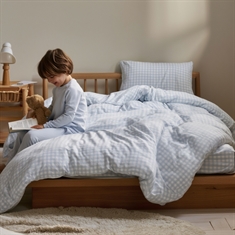 By Mats junior bedding 100x140 cm - Blue and white checks in 100% cotton