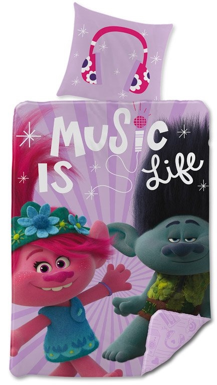 Home » Bedding » Children's bedding » Children's bedding 140x200 cm Children's bedding - 140x200 cm - Trolls bedding set with Poppy and Branch - Reversible design - Bedding in 100% cotton Save43% Björna 47,9927,49EURSave 21,- In stock Quantity Add to basket See more from: Björna Item number: 3035-1 Read our bedding guide See our large selection of fitted sheets See our large selection of duvets 140x200 Do you have questions about the product? Soft and lovely cottonOEKO-TEX® certifiedSmart reversible design Duvet cover: 140x200 cm Pillowcase: 60x63 cm Material: 100% soft cotton Color: Multicolored Motif: Reversible design - front side with Poppy and Branch from Trolls, back side with purple shadow pattern Closure: Duvet with buttons and pillowcase with overlap Washing: 60° Tumble drying: Yes Ironing safe: Yes Certification: STANDARD 100 by OEKO-TEX® (11.HOT.95170). Your guarantee that the product is free from harmful chemicals. Trolls bedding set with a beautiful motif of the two popular trolls from the Trolls movies. The soft bedding set made of 100% cotton is both breathable and absorbent, providing good sleeping comfort. A durable cotton children's bedding set that makes the children's room a little more exciting. DreamWorks, the creators behind the successful comedy film "Trolls," have done it again and are now ready with the Trolls 2 movie titled "Trolls World Tour." The bedding features the whimsical trolls Poppy and Branch who love good music. The bedding set is made of 100% cotton and is naturally OEKO-TEX certified. Let yourself be carried away into the magical dream world with these small whimsical trolls. A true Trolls fan will enjoy falling asleep in this lovely bedding. The bedding set is made of 100% soft cotton which makes the set durable and highly breathable. The pure cotton quality provides a lovely and soft bedding set that helps promote sleeping comfort for the child. Cotton bedding can be washed at 60° in the washing machine, which also helps maintain a high level of hygiene. The bedding is further produced with OEKO-TEX certification, which is your guarantee that the set is free from harmful chemicals. Browse for favorites and much more in our large selection of accessories for the children's universe For the child, the bed should be a safe place and all elements should together create soft and pleasant surroundings for the child to find peace in. Therefore, feel free to use the child's interests to create a safe sleeping room for the child. With us, you can find a large selection of accessories for the bed and children's room, ranging from fitted sheets to duvets, pillows, bedding, and much more, and plenty of products featuring all the children's favorites. All elements that can help create the right sleeping environment and room for your child. Here you can find lovely and soft quality fitted sheets Return to Children's bedding 140x200 cm Customers also bought Coca Cola bedding - Reversible bed set with logo - 140x200 cm - 100% soft cotton bed linen In stock 47,9920,49EUR Add to basket Unicorn bedding - 140x200 cm - Unicorn and rainbow children's bedding - Reversible duvet cover set in 100% cotton In stock 47,9927,49EUR Add to basket Bedding 140x200 cm - Wild Kratts bedding set - Known from DR Ramasjang - Duvet cover in 100% cotton In stock 47,9927,49EUR Add to basket Muscovy down duvet 100% down - 140x200 cm - Hypoallergenic - All-season duvet - Zen Sleep duvet In stock 312,99108,99EUR Add to basket Stretch fitted sheet 90x200 cm - Grey jersey stretch fitted sheet - IN Style fitted sheet In stock 23,498,49EUR Add to basket Stretch fitted sheet 180x200 cm - Grey jersey stretch fitted sheet - IN Style - Fitted sheet for double bed In stock 36,9913,99EUR Add to basket Mermaid bedding - 140x200 cm - Be a mermaid - Duvet cover with reversible design - 100% cotton bedding set In stock 47,9927,49EUR Add to basket Children's bedding - 140x200 cm - The Incredibles - Duvet cover with reversible design - 100% cotton bedding set In stock 47,9920,49EUR Add to basket Bedding 140x200 cm - Dinosaur bedding - Reversible design - Dino duvet cover in 100% cotton In stock 47,9913,99EUR Add to basket Gabby's Dollhouse bedding - 140x200 cm - Gabby and Pandy Paws - 2-in-1 design - Duvet cover in 100% cotton. In stock 47,9927,49EUR Add to basket