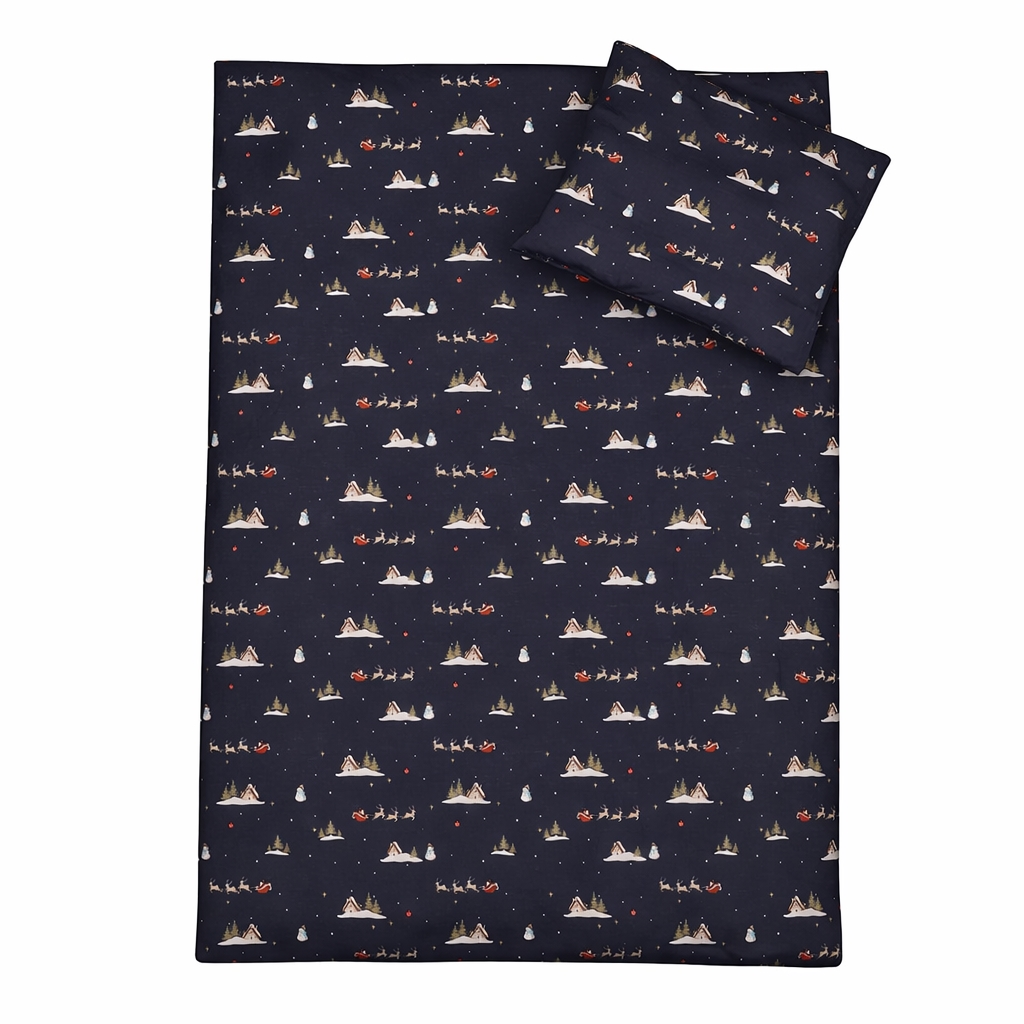 By Mats Christmas bedding 100x140 cm - dark blue with Santa and reindeer