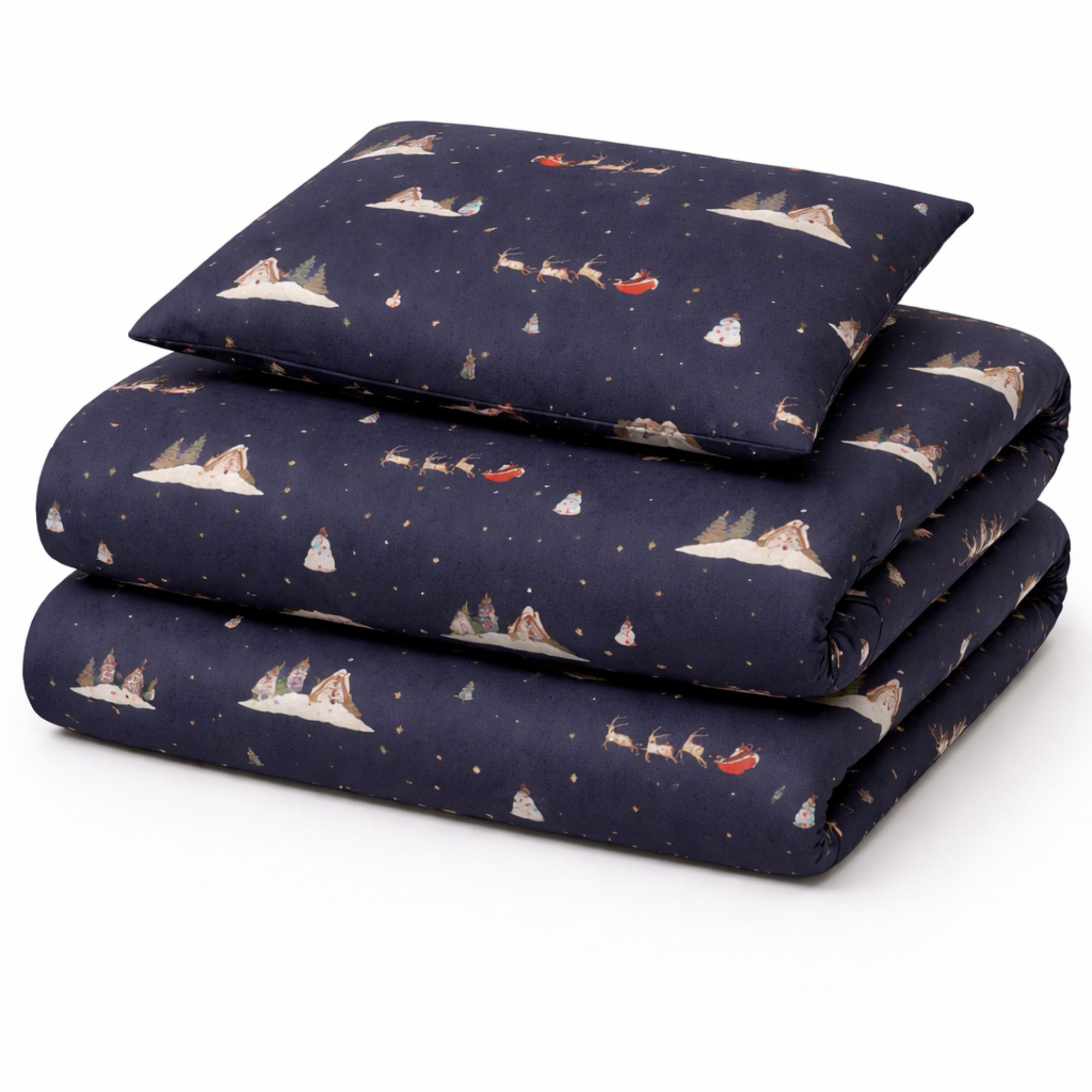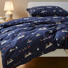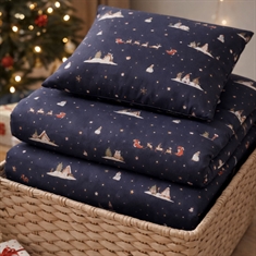 Make December extra cozy with this atmospheric Christmas bedding from By Mats. The dark blue design with Santas, reindeer and small winter motifs creates a magical Christmas atmosphere in the children's room and makes bedtime something special during the holiday season.